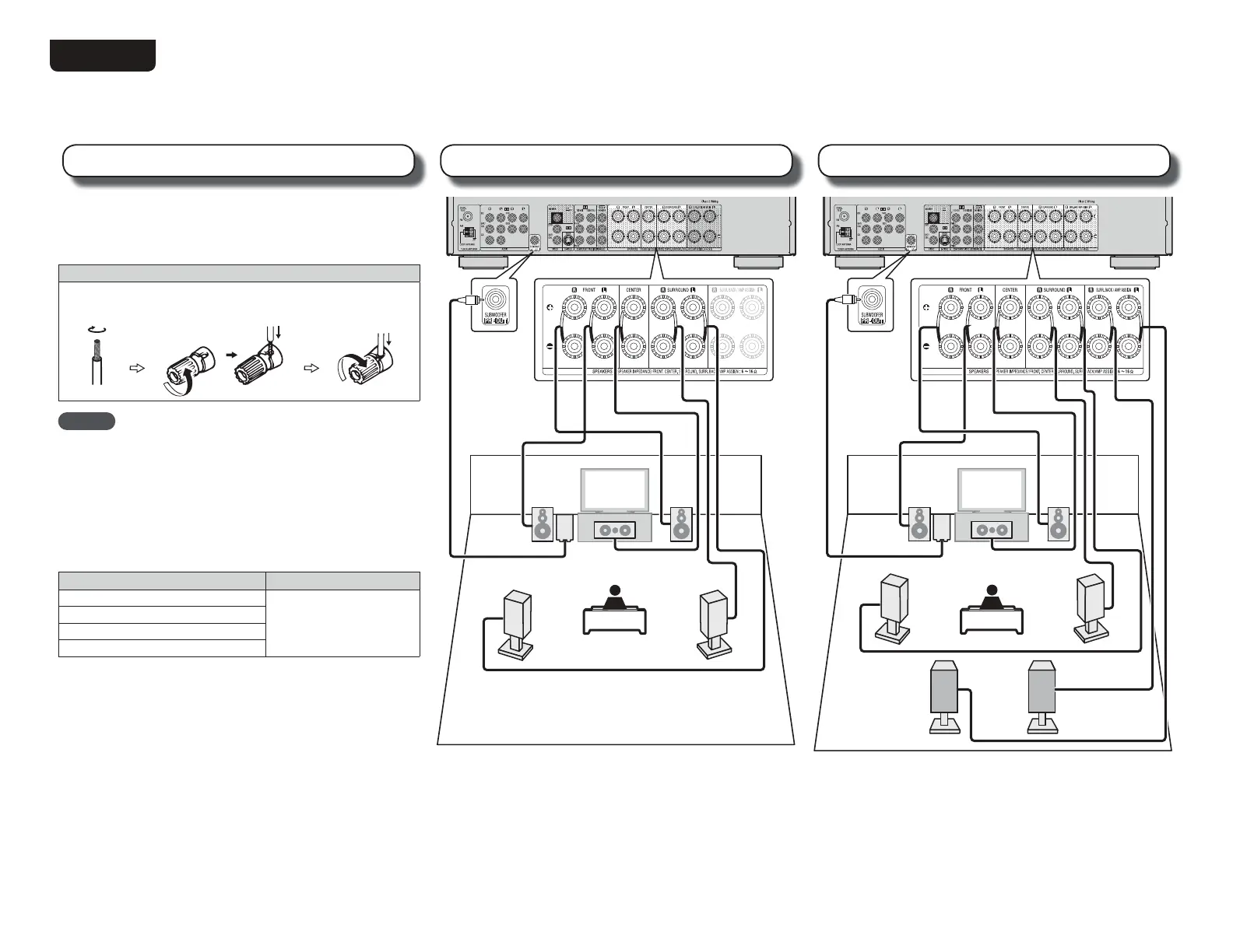 The speakers are connected in “2. Speaker Connection” of the Setup Wizard but if you did not use or cancelled the Setup Wizard, connect the speakers as shown below.
