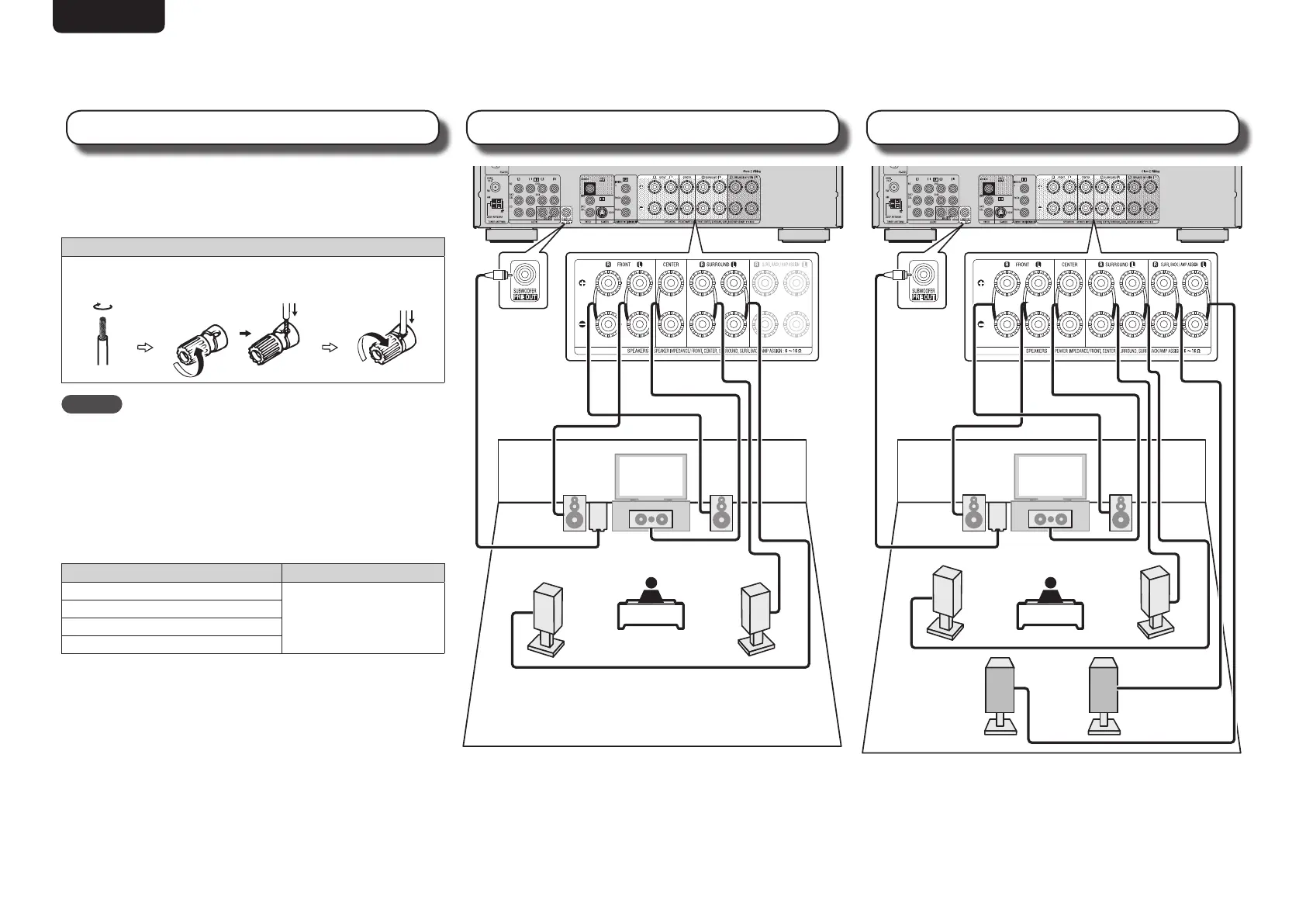The speakers are connected in “2. Speaker Connection” of the Setup Wizard but if you did not use or cancelled the Setup Wizard, connect the speakers as shown below.