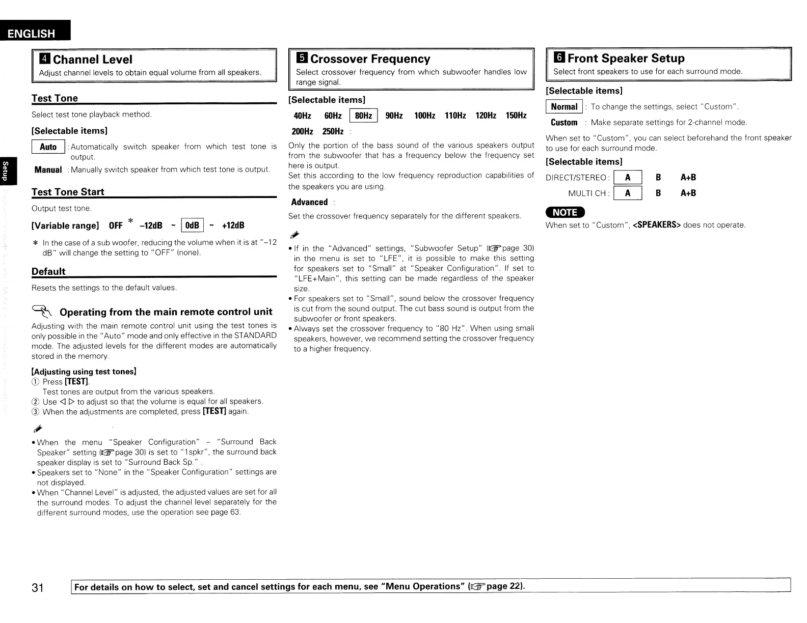 the "Advanced" settings, "Subwoofer Setup" (Gr'page