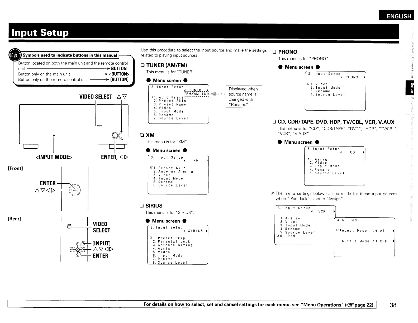 for "CD", "CDRfTAPE", "DVD", "HDP", "TV/CBL",