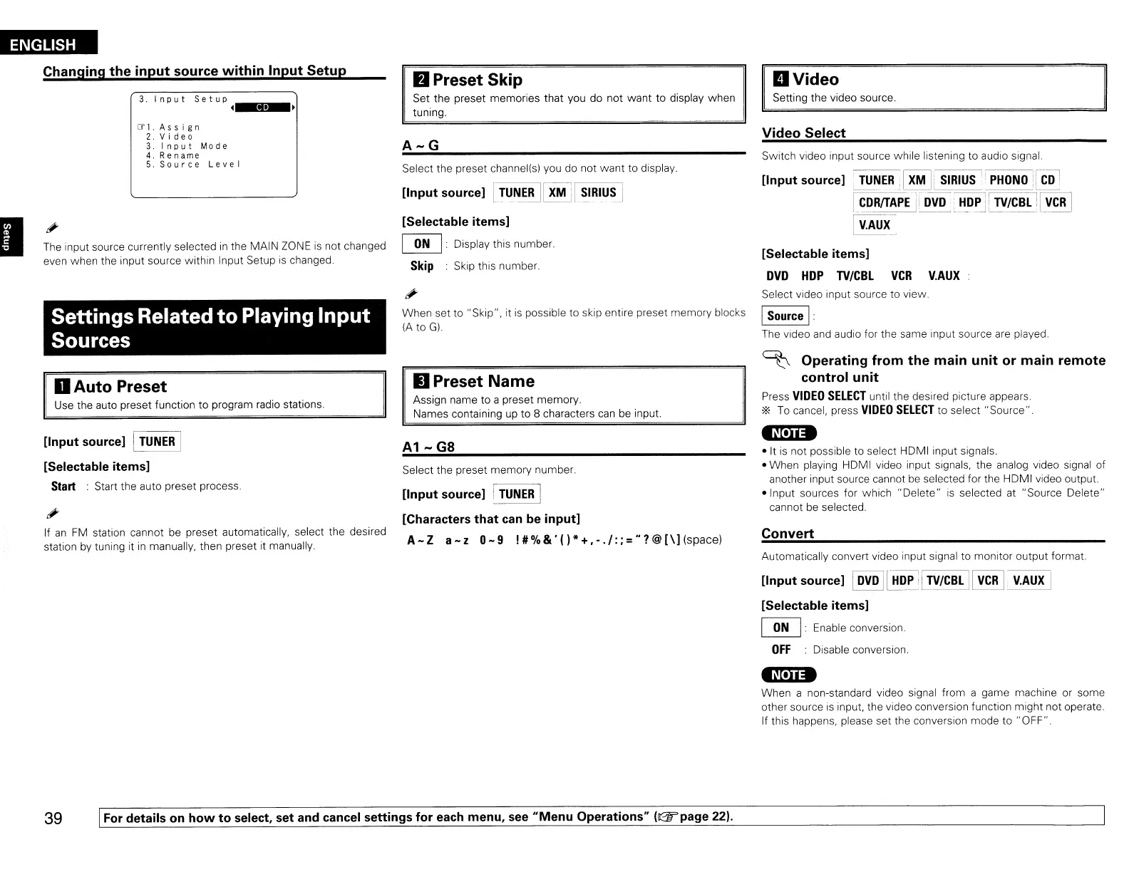 Changing the input source within Input Setup