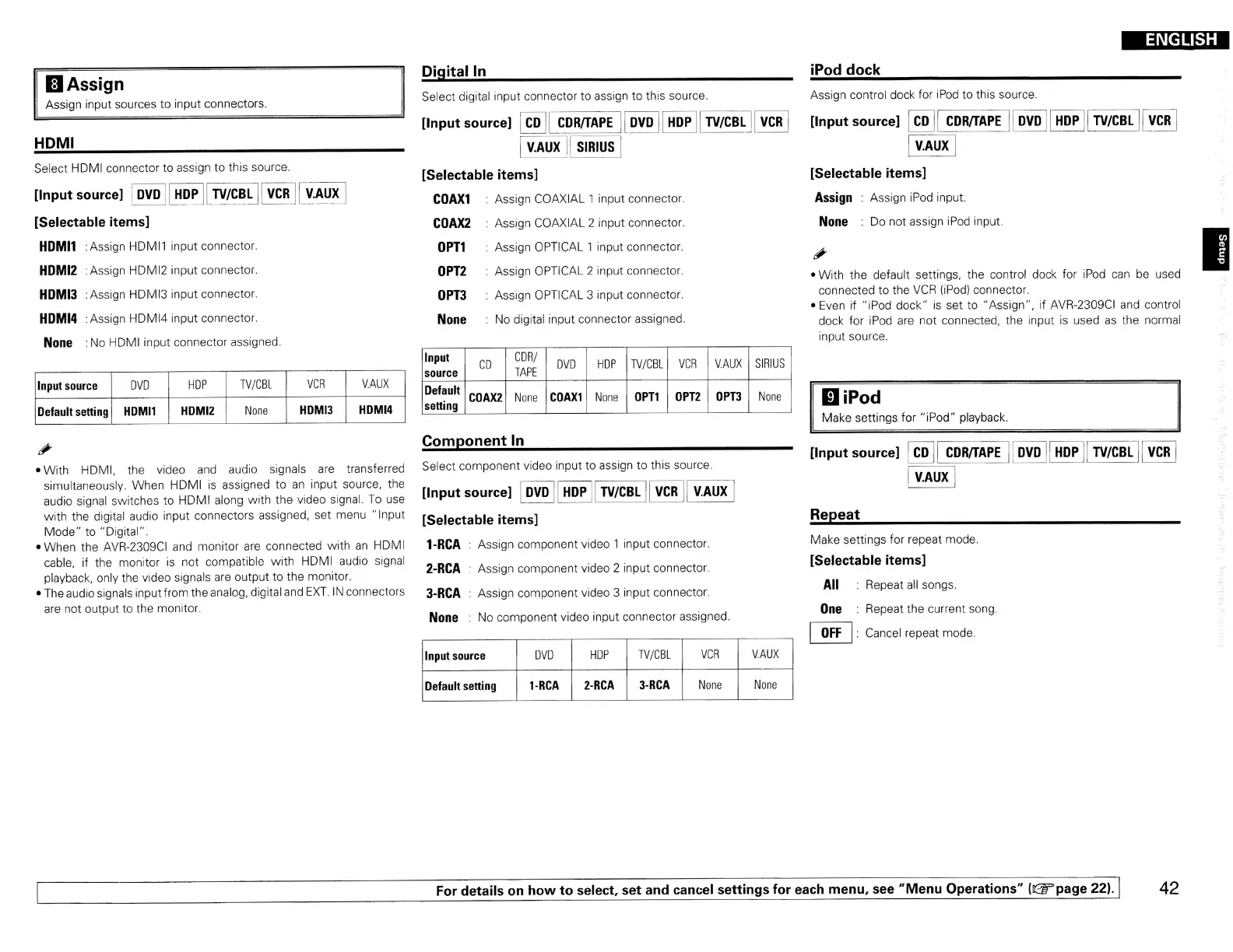 : Assign iPod input.