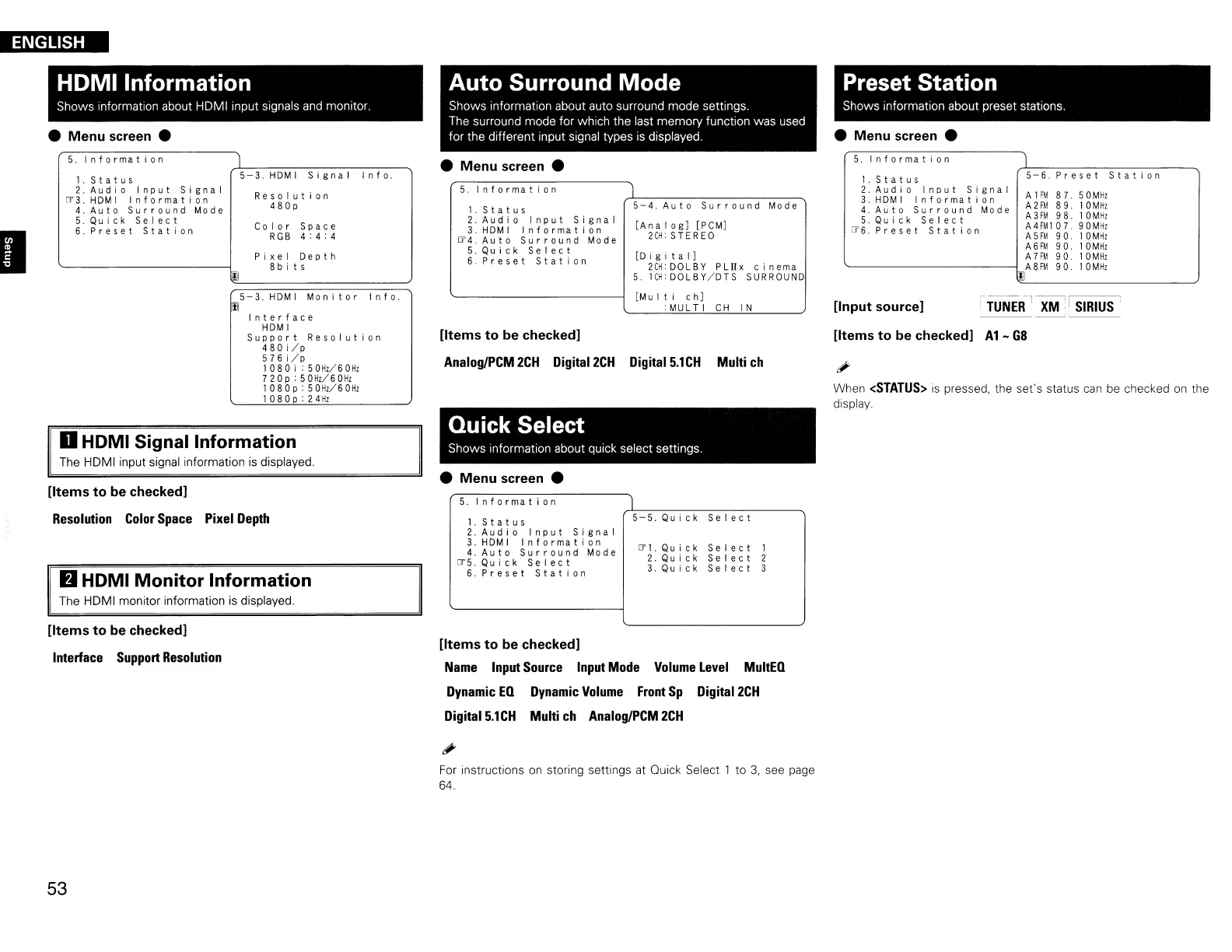Shows information about preset stations.