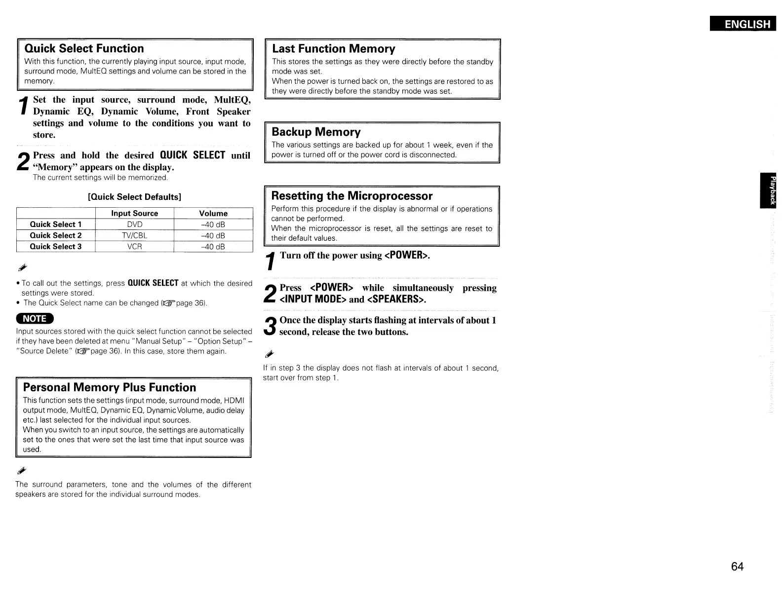 This function sets the settings (input mode, surround mode, HDMI