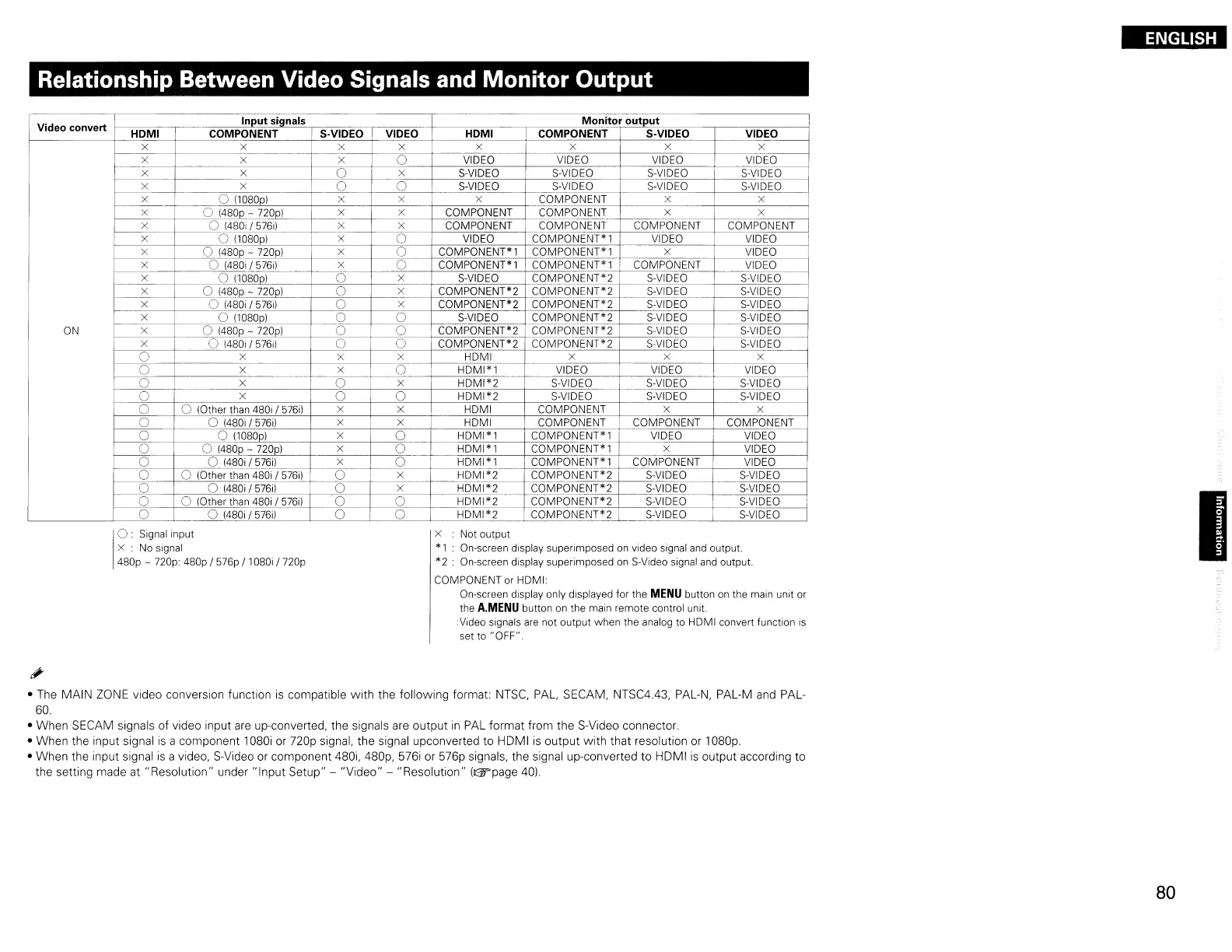a video, S-Video or component 480i, 480p, 576i or 576p signals, the signal up-converted to HDMI