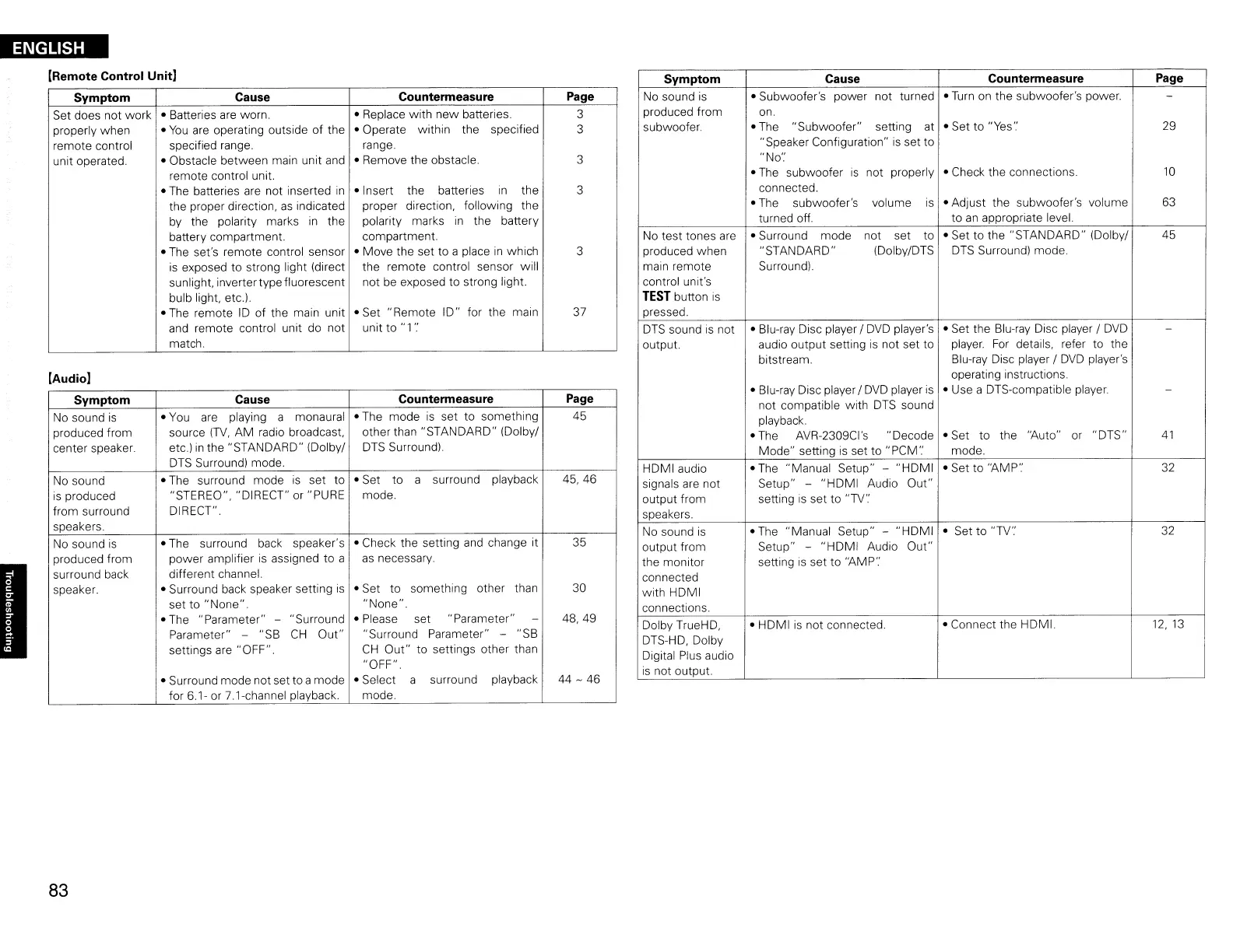 Symptom Cause Countermeasure Page