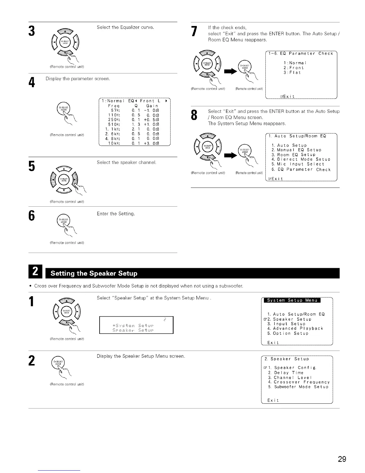 • Cress ever Frequency and Subwoefer Mede Setup is net displayed when net using a subweofer.