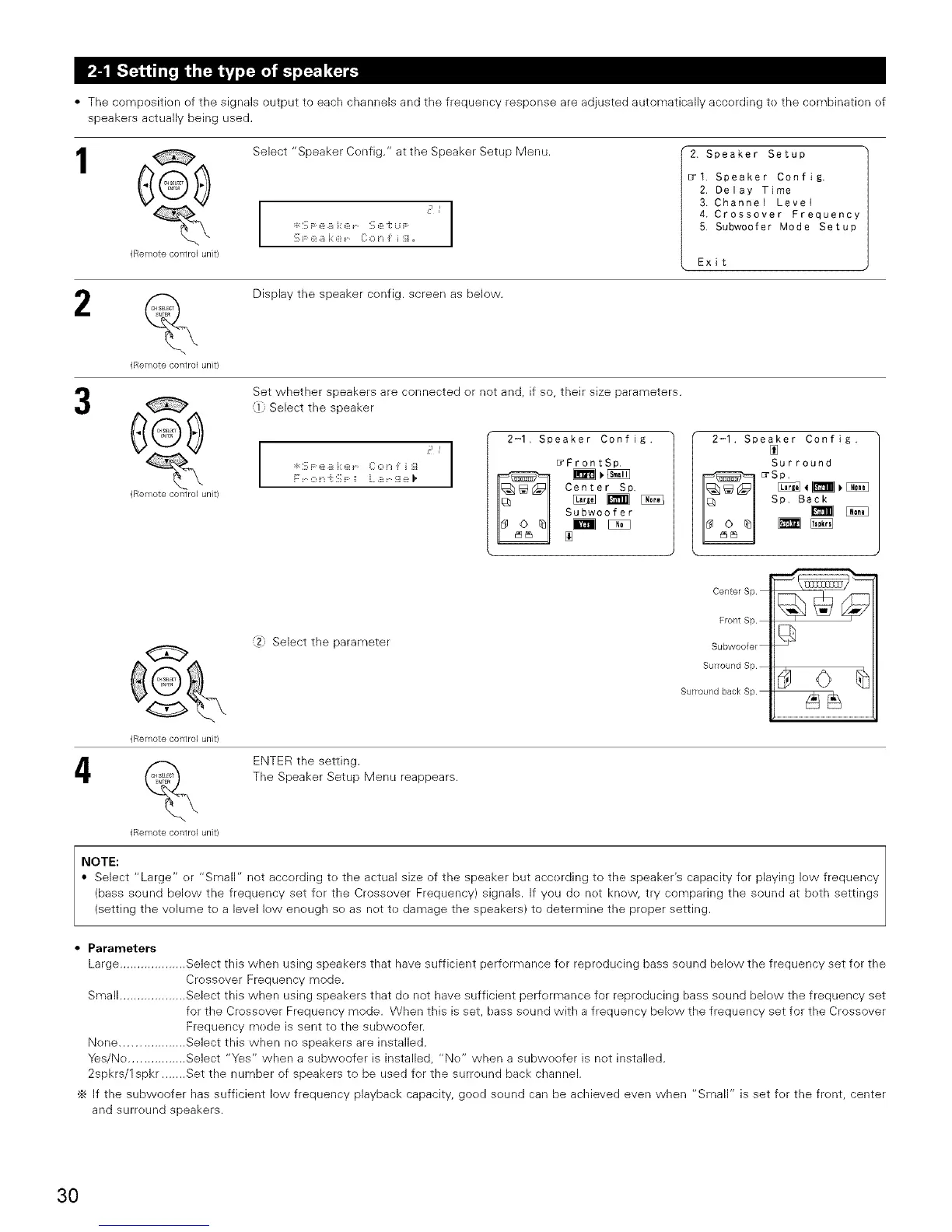 • Select "Large" or "Small" not accerding te the actual size of the speaker but accerding to the speaker's capacity for playing low frequency