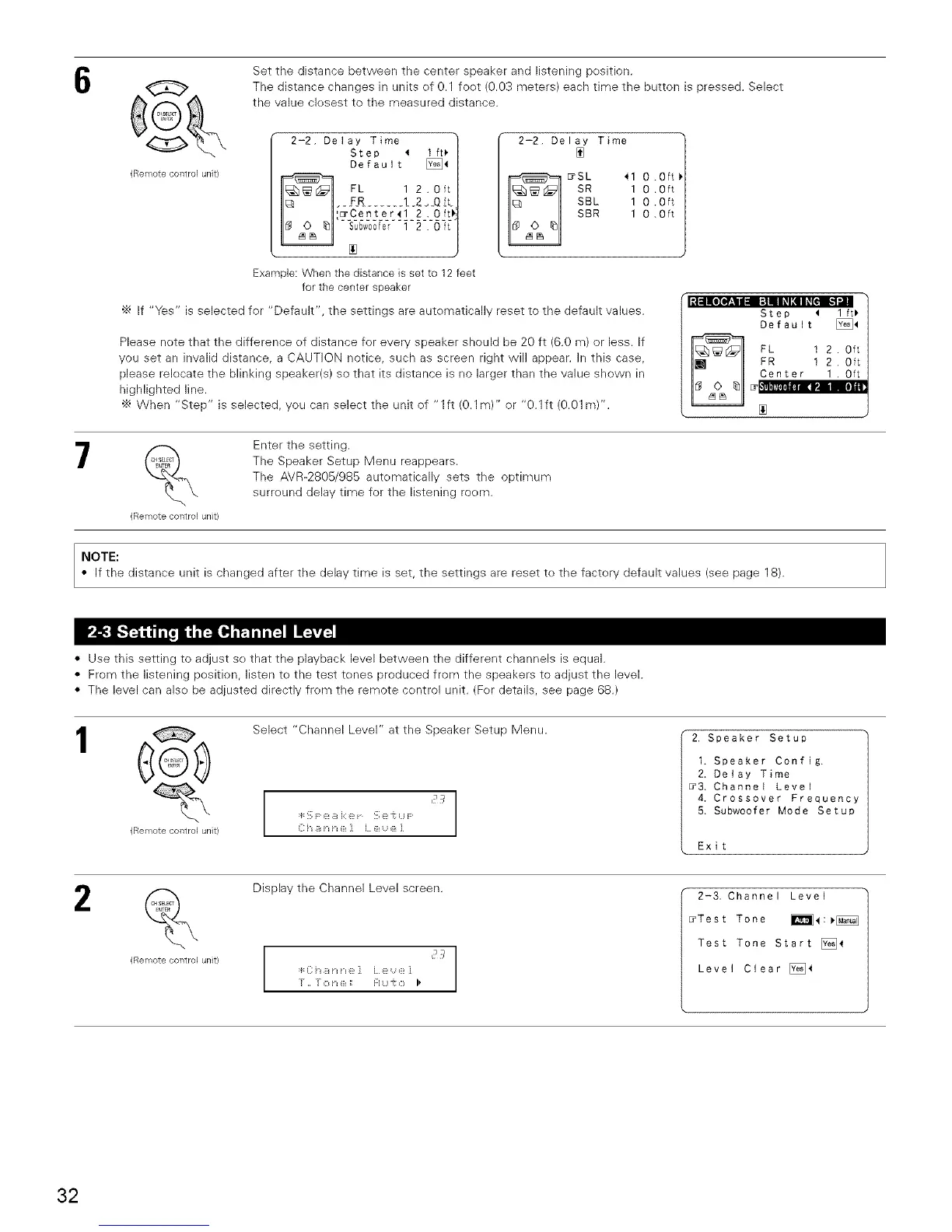 • From the listening pesition, listen to the test tenes produced from the speakers to adjust the level.