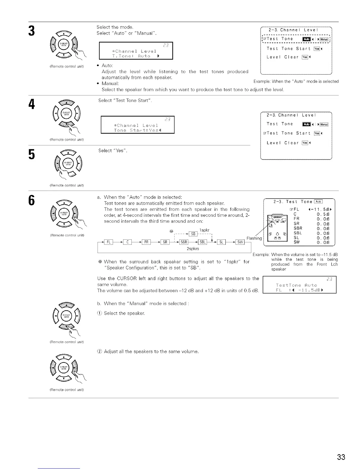Select the speaker frem which yeu want te produce the test tone to adjust the level.