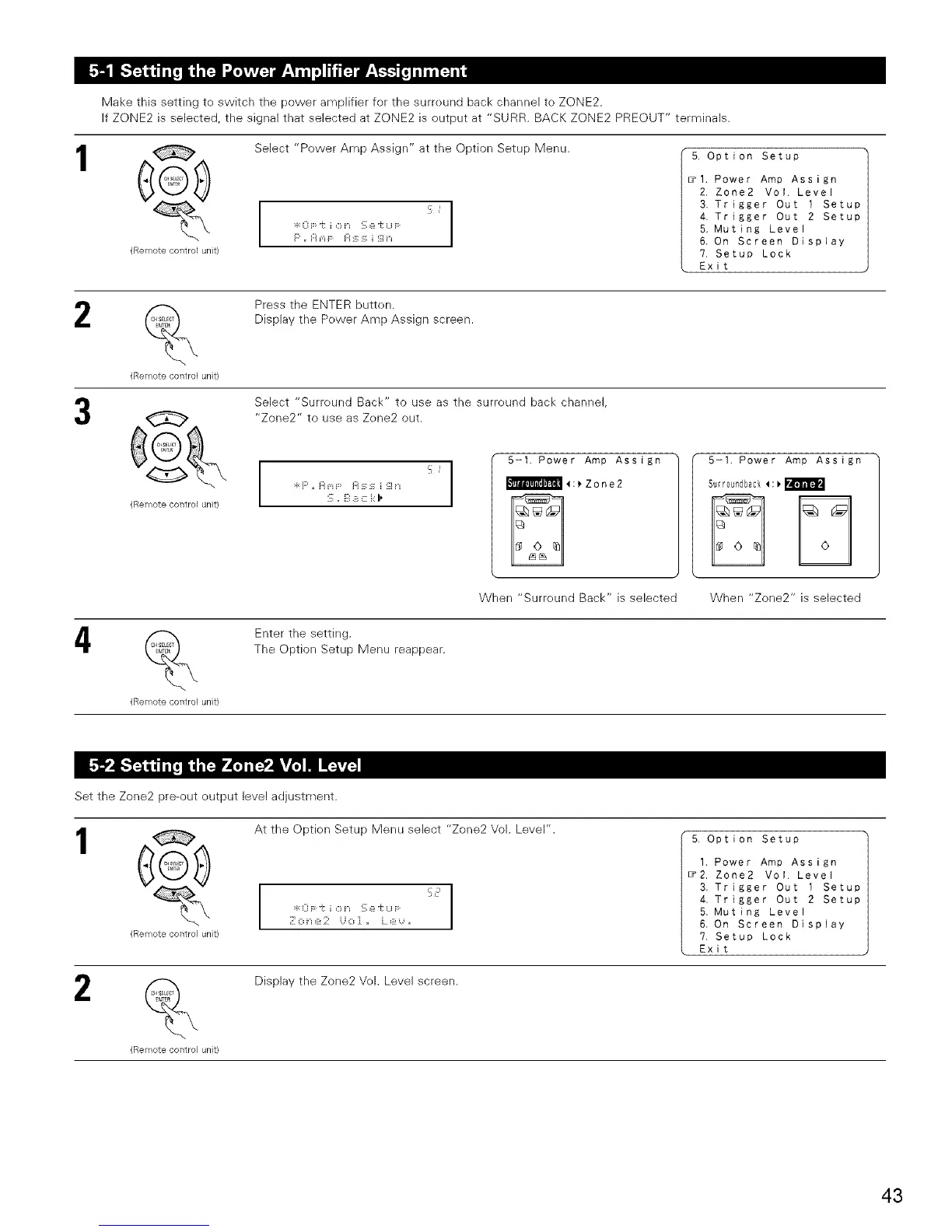 Make this setting to switch the power amplifier for the surreund back channel to ZONE2.