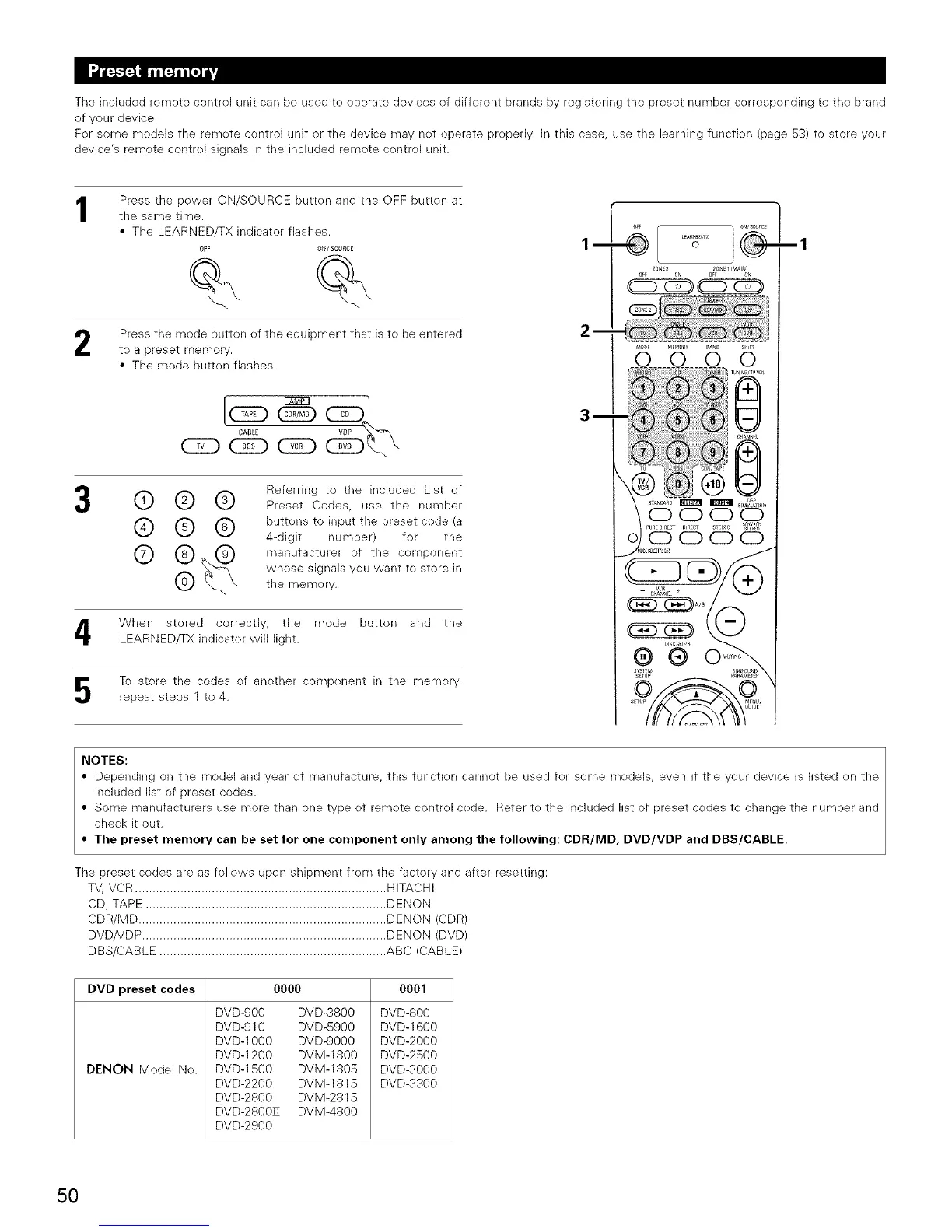 The included remote control unit can be used te operate devices of different brands by registering the preset number cerrespending to the brand