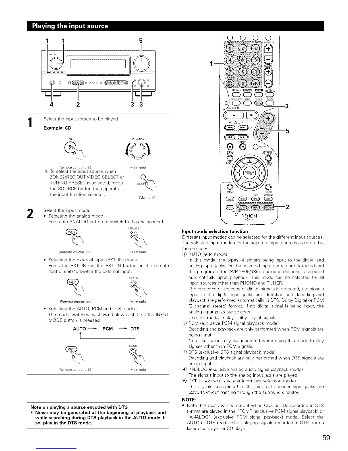 • Selecting the AUTO, PCM and DTS modes