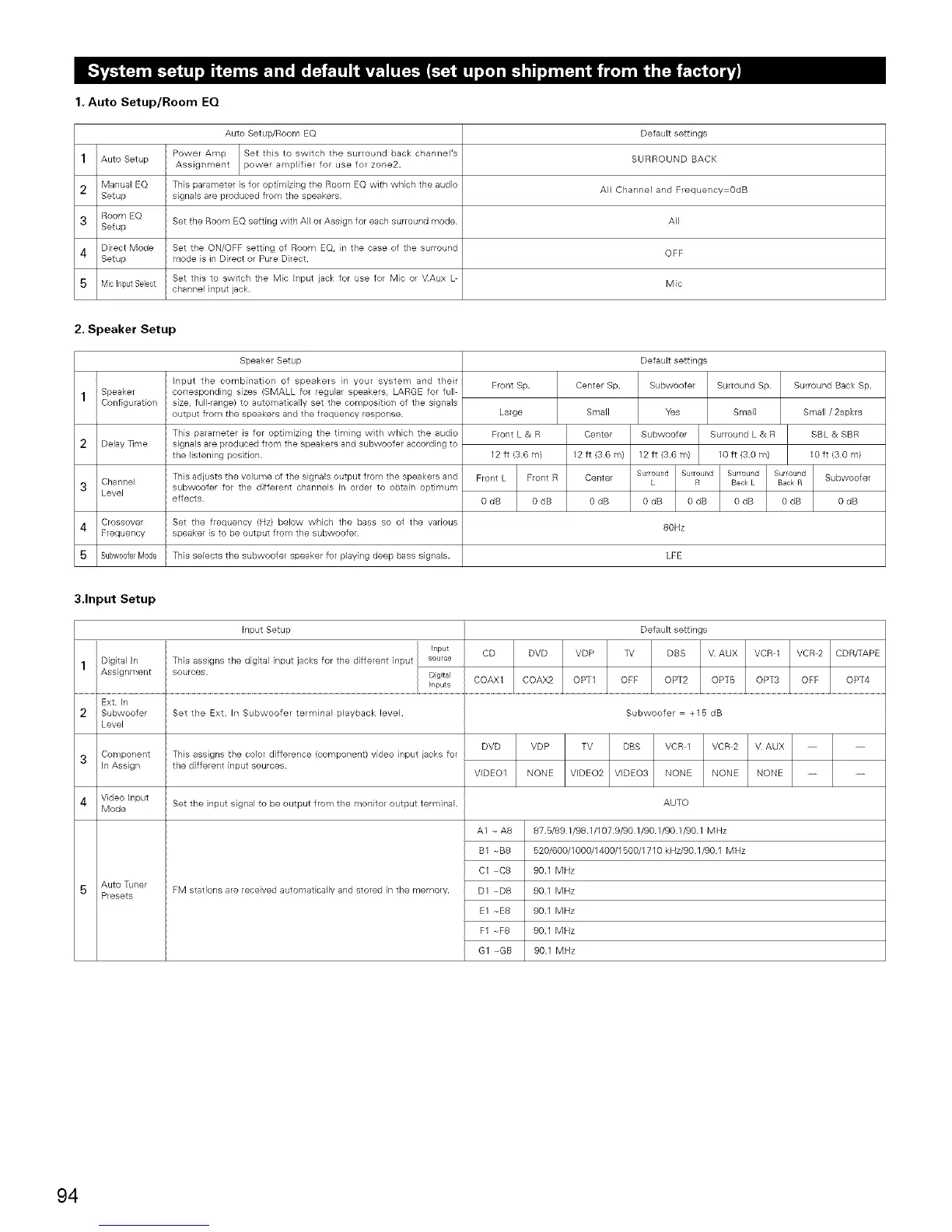 Auto Setup/Room EQ Default settings