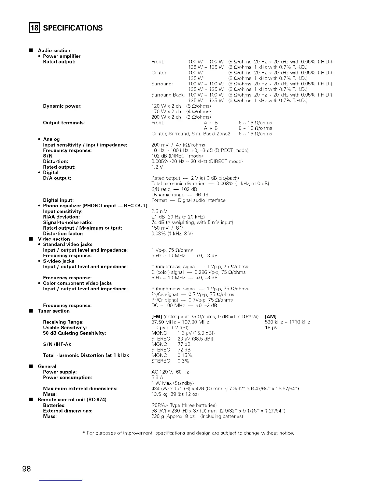 • Phono equalizer (PHONO input -- REC OUT)