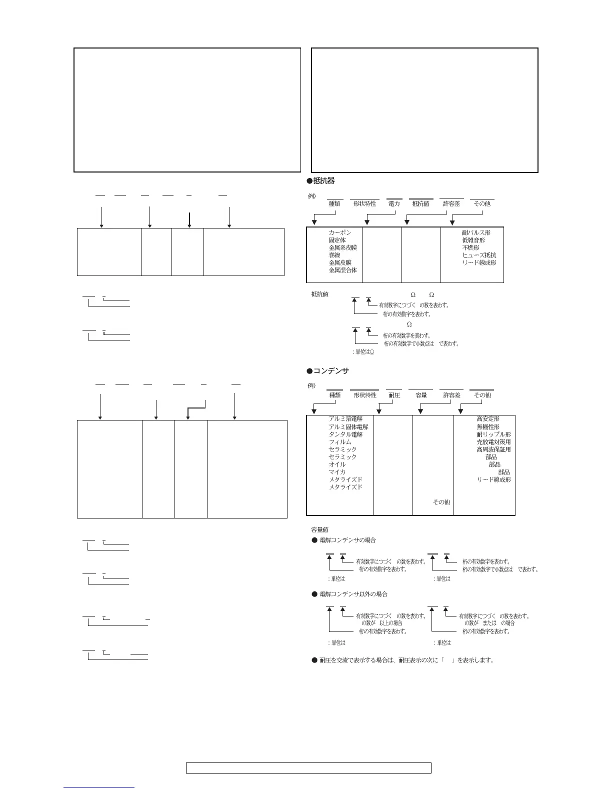 8.部品表の抵抗器、コンデンサの品名記号の読み方は表を参照してく