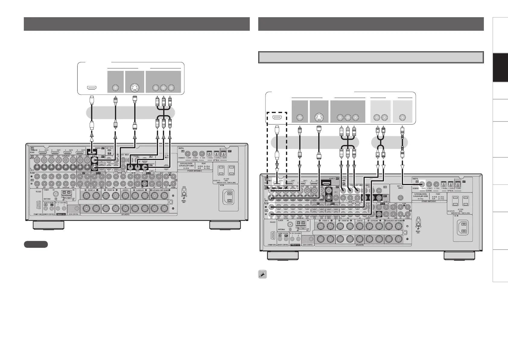 • With HDMI connections, the video and audio signals can be transferred with a single cable.