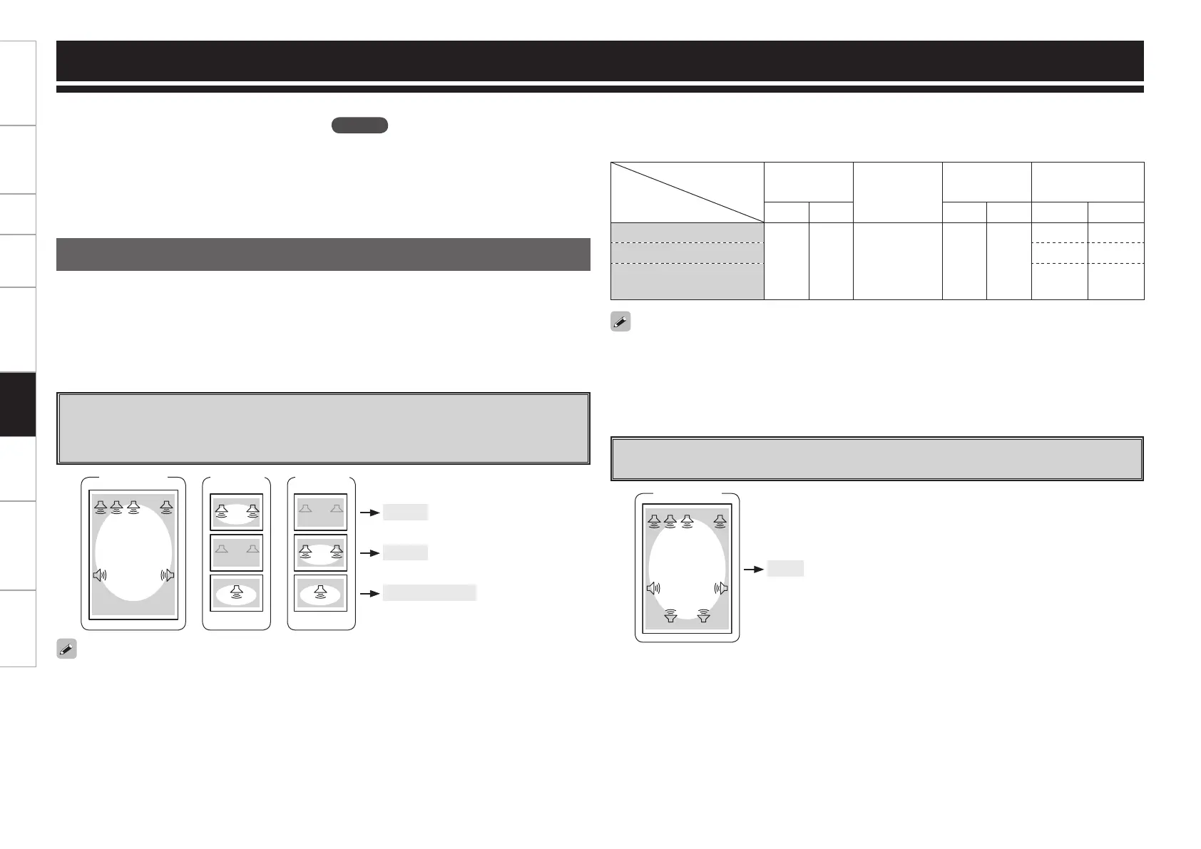 n Amp Assign mode setting and speakers connected to the various speaker