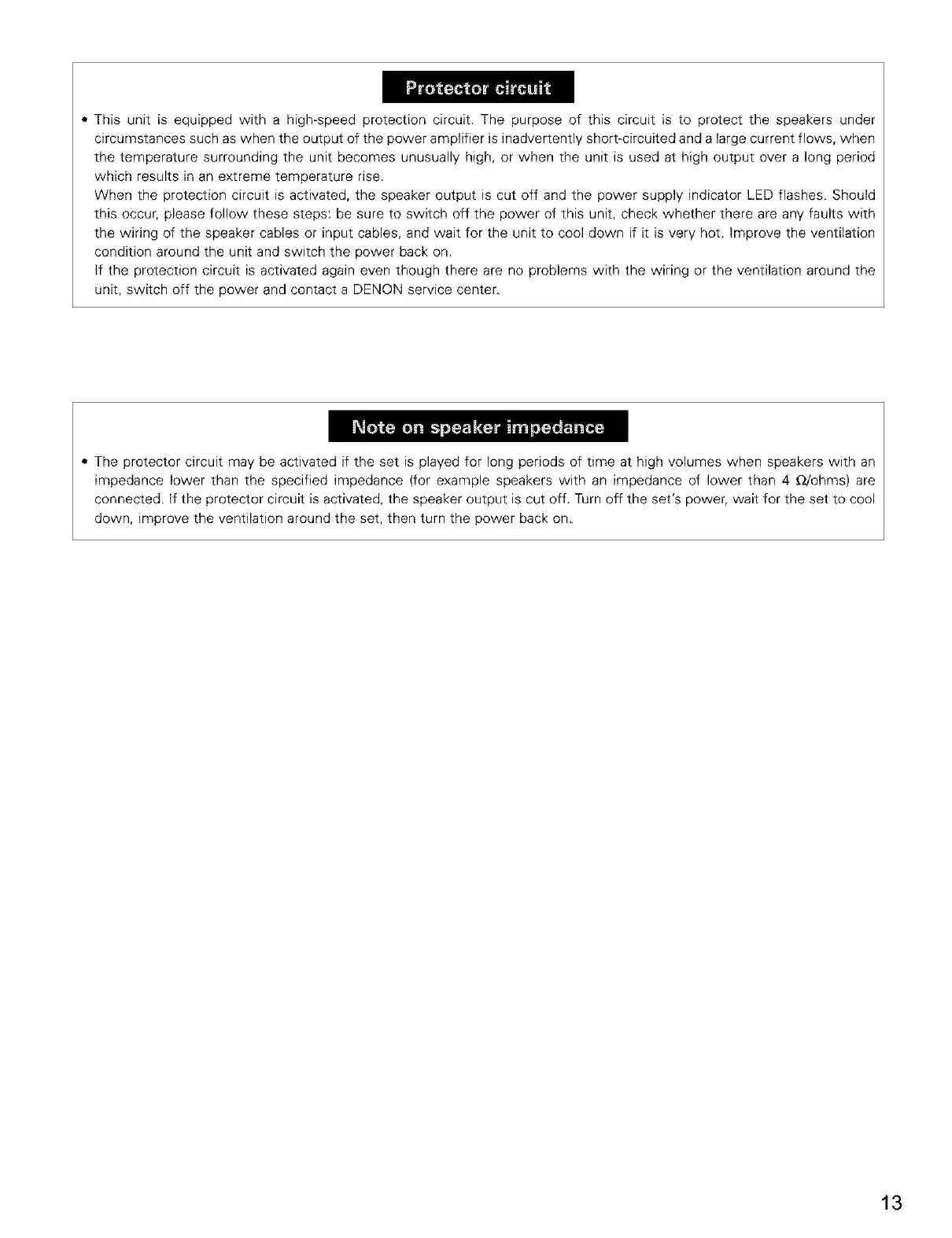 • This unit is equipped with a high-speed protection circuit. The purpose of this circuit is to protect the speakers under