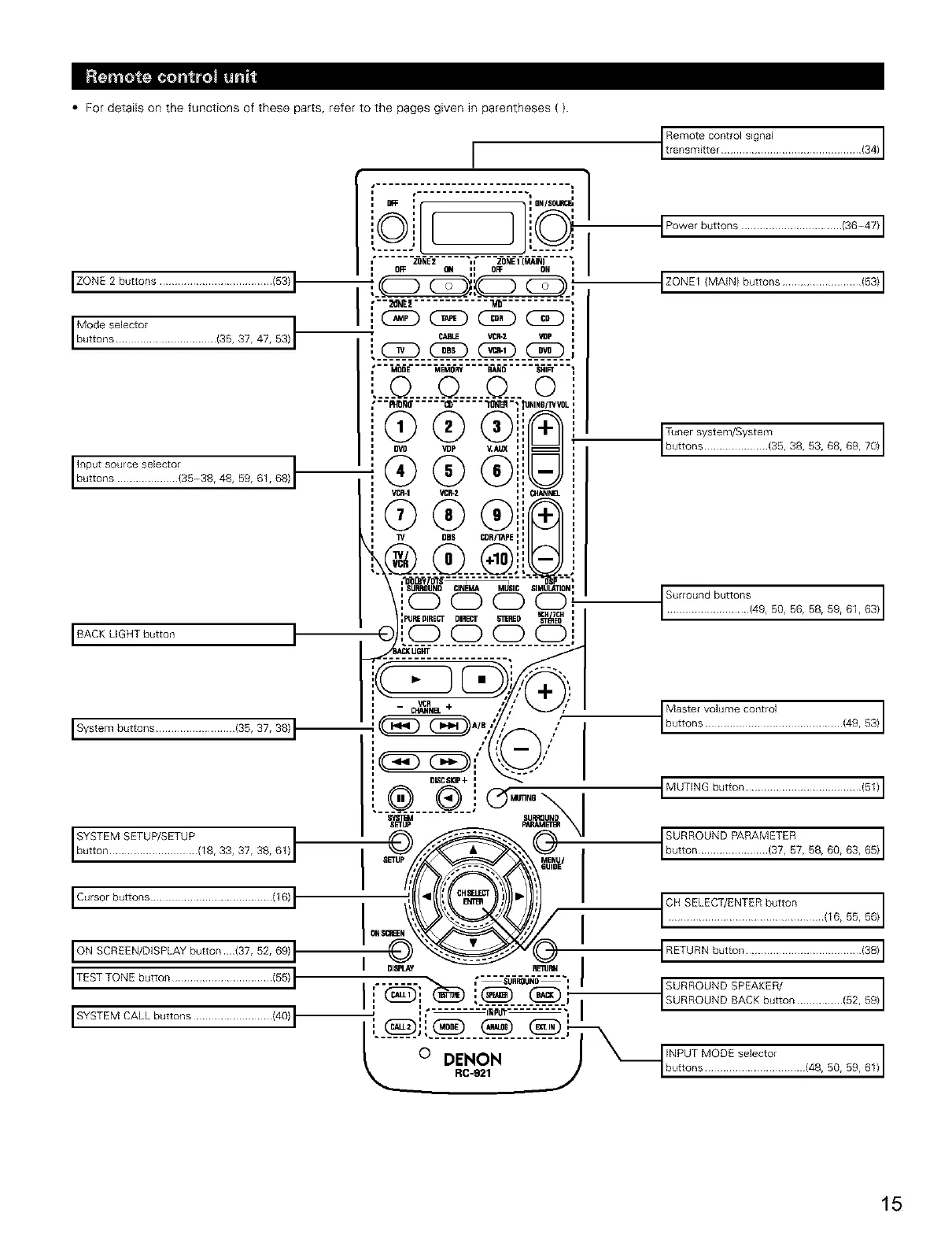 ION SCREEN/DISPLAY button (37, 52, 69) RETURN button ...................................... (38) 1
