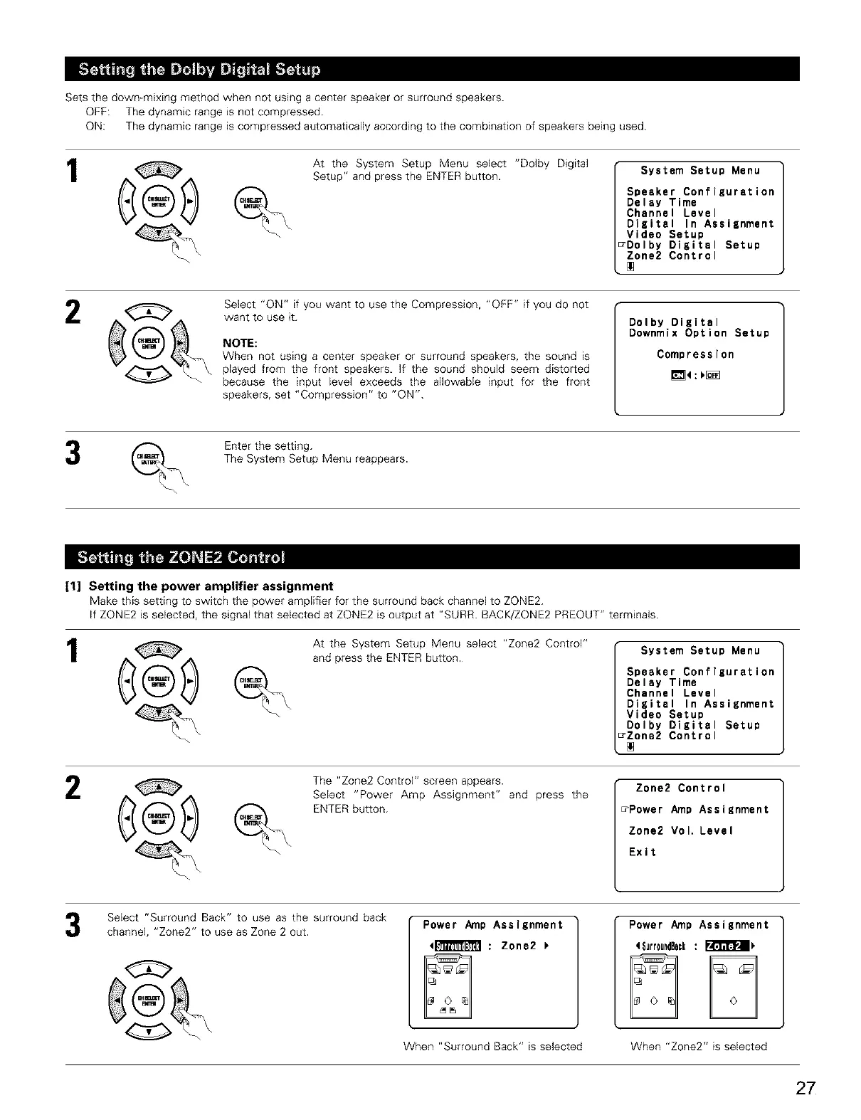 Make this setting to switch the power amplifier for the surround back channel to ZONE2.