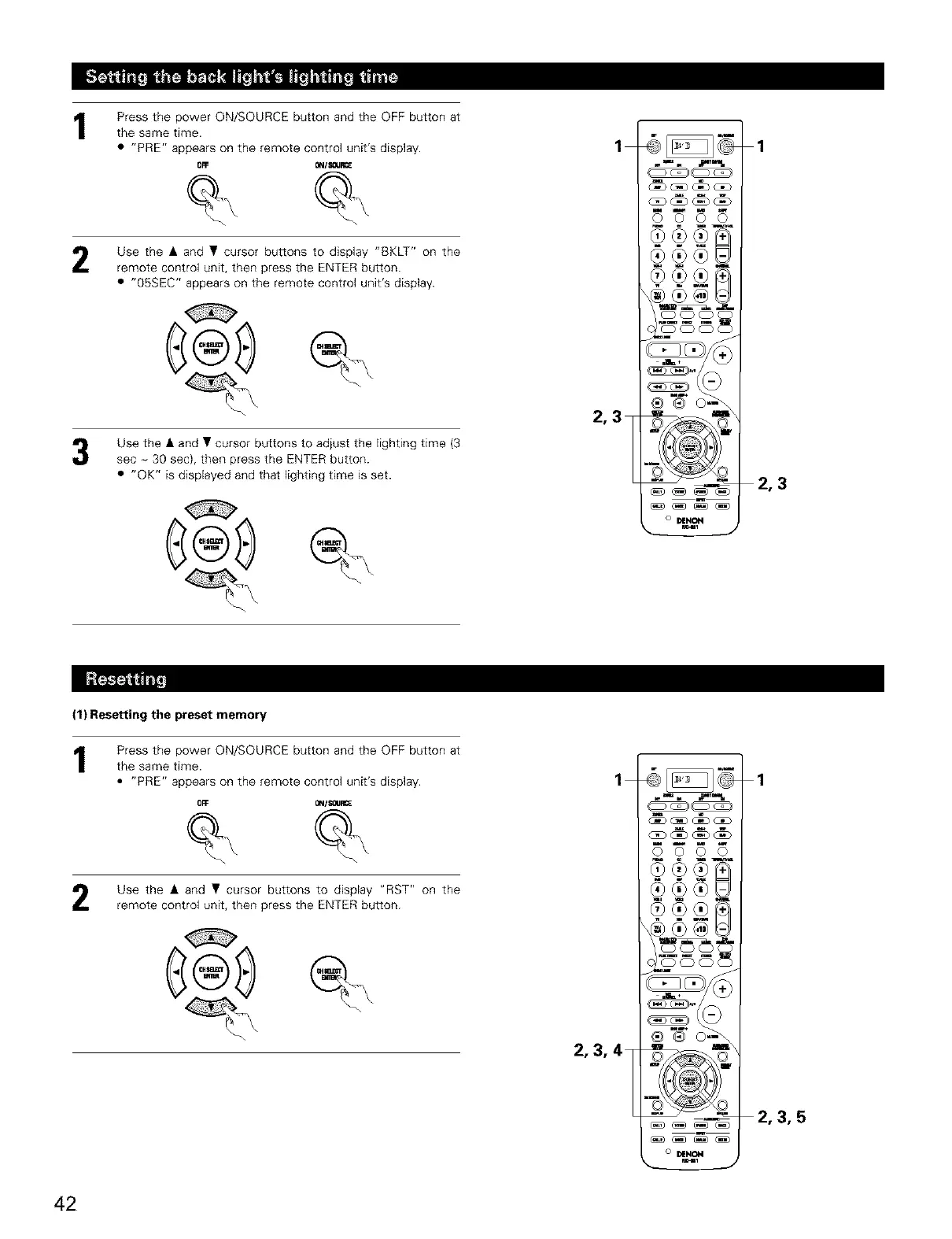 (1) Resetting the preset memory