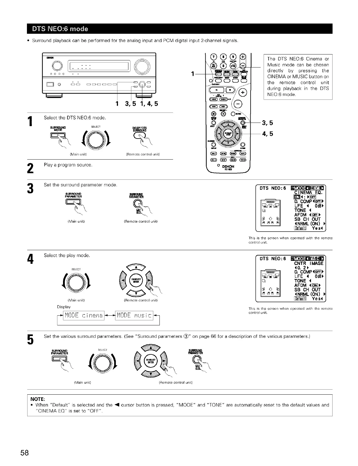 • When "Default" is selected and the _1 cursor button is pressed, "MODE" and "TONE" are automatically reset to the default values and