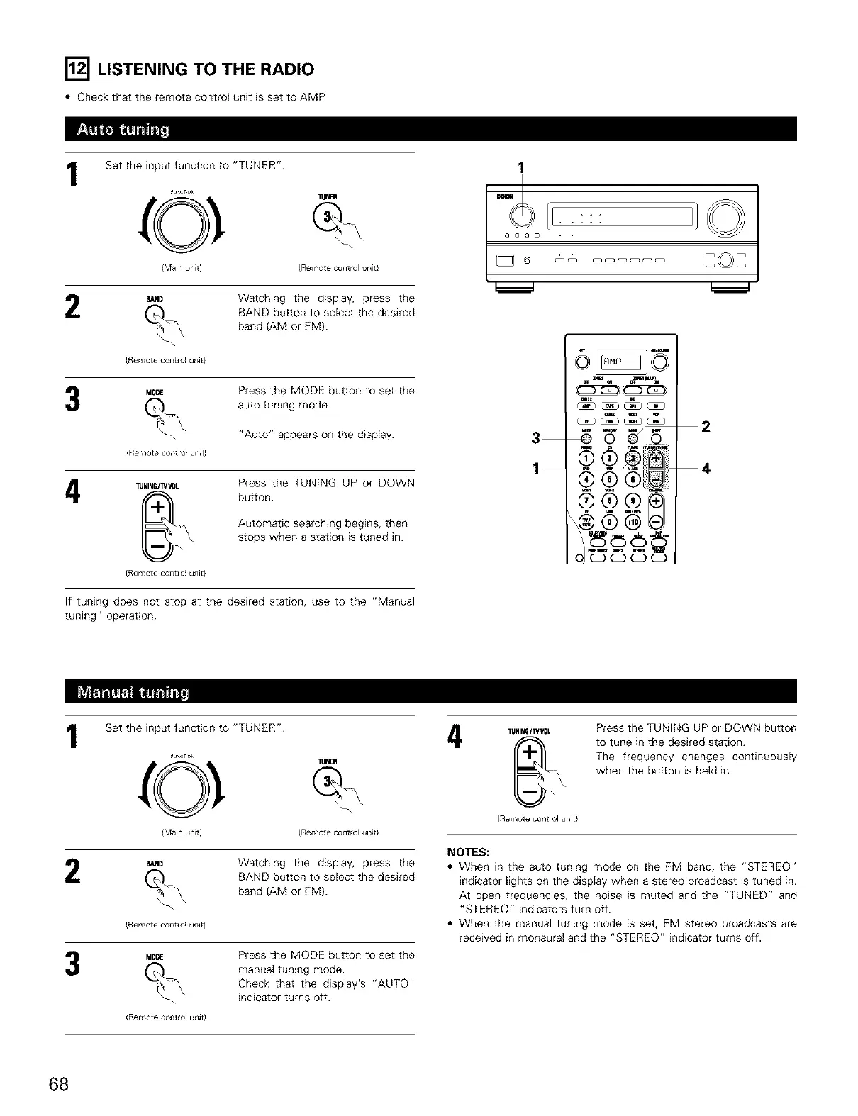 • When the manual tuning mode is set, FM stereo broadcasts are