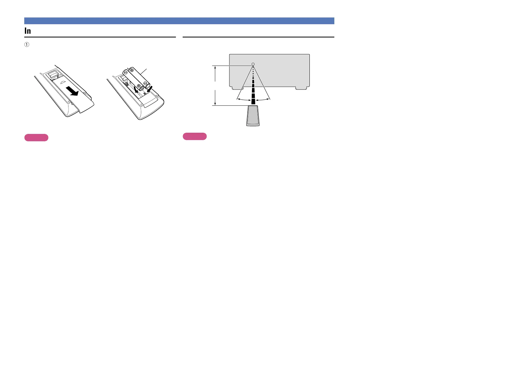 •Insert the specified batteries in the remote control unit.