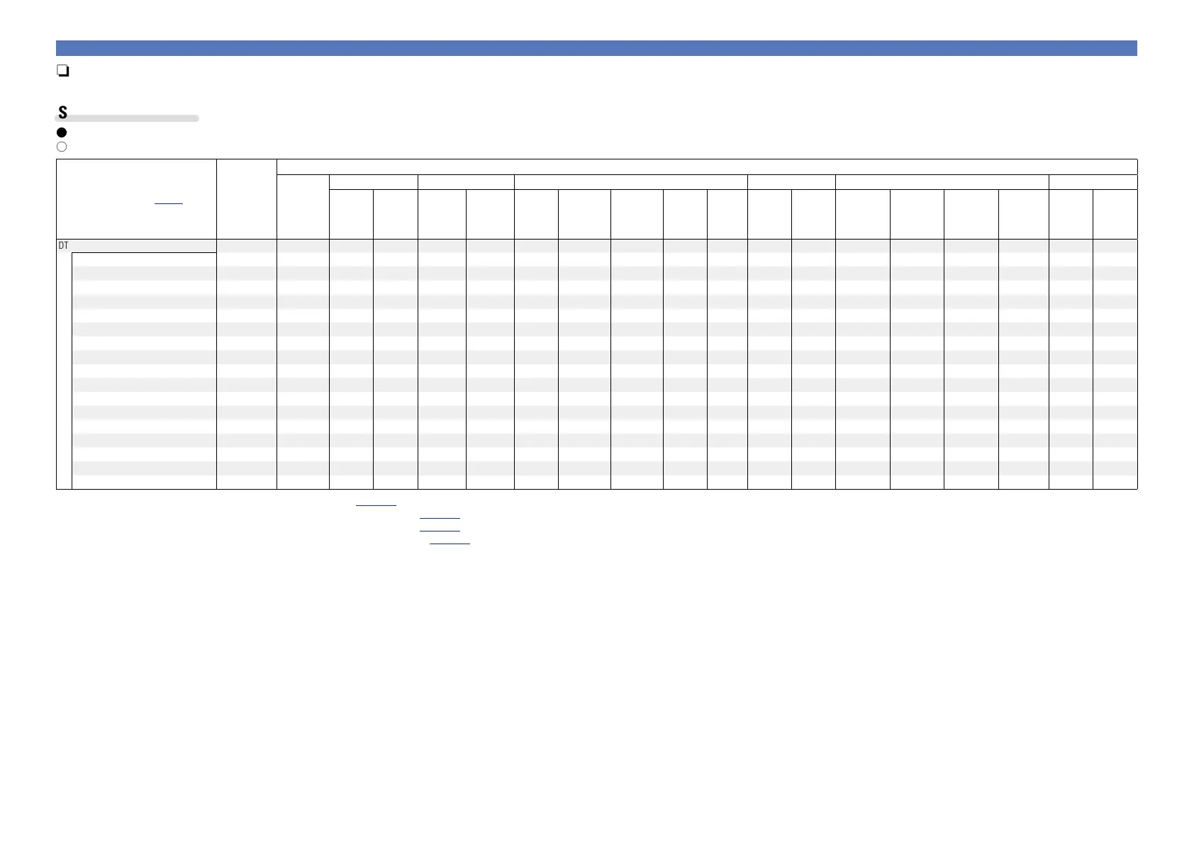 This table shows the input signal that can be played in each sound mode. Check the audio signal of the input source then select the sound mode.