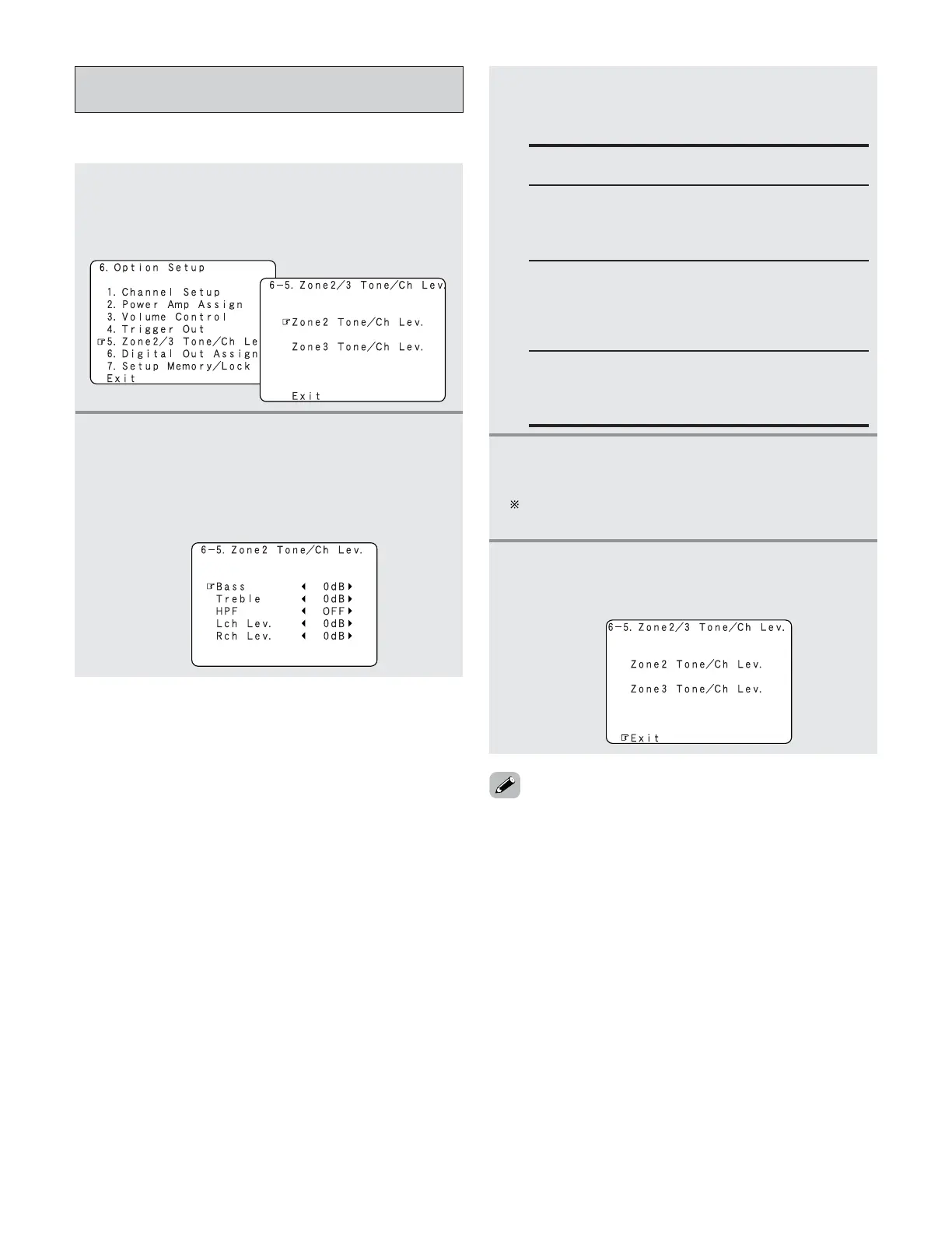 “Zone2/3 Tone/Ch Lev.” at the “Option Setup”