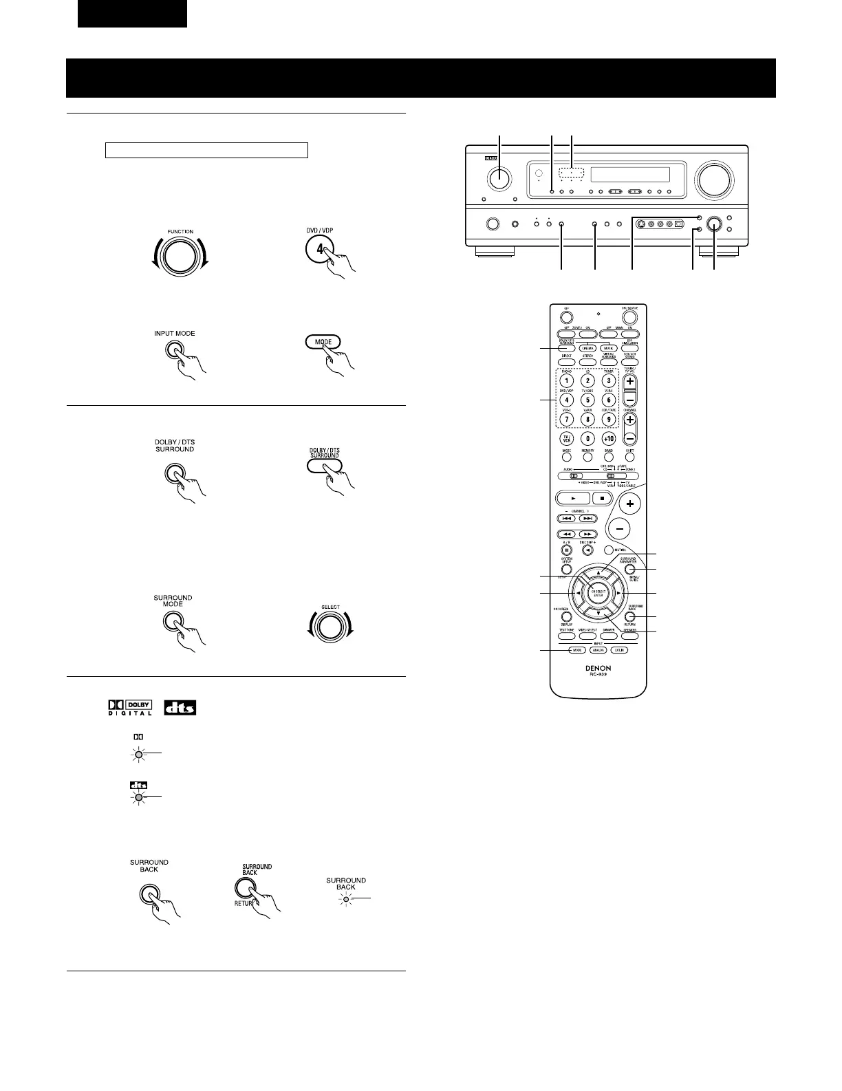 Mode Dolby Digital (uniquement avec entrée numérique) et le mode d’ambiance DTS