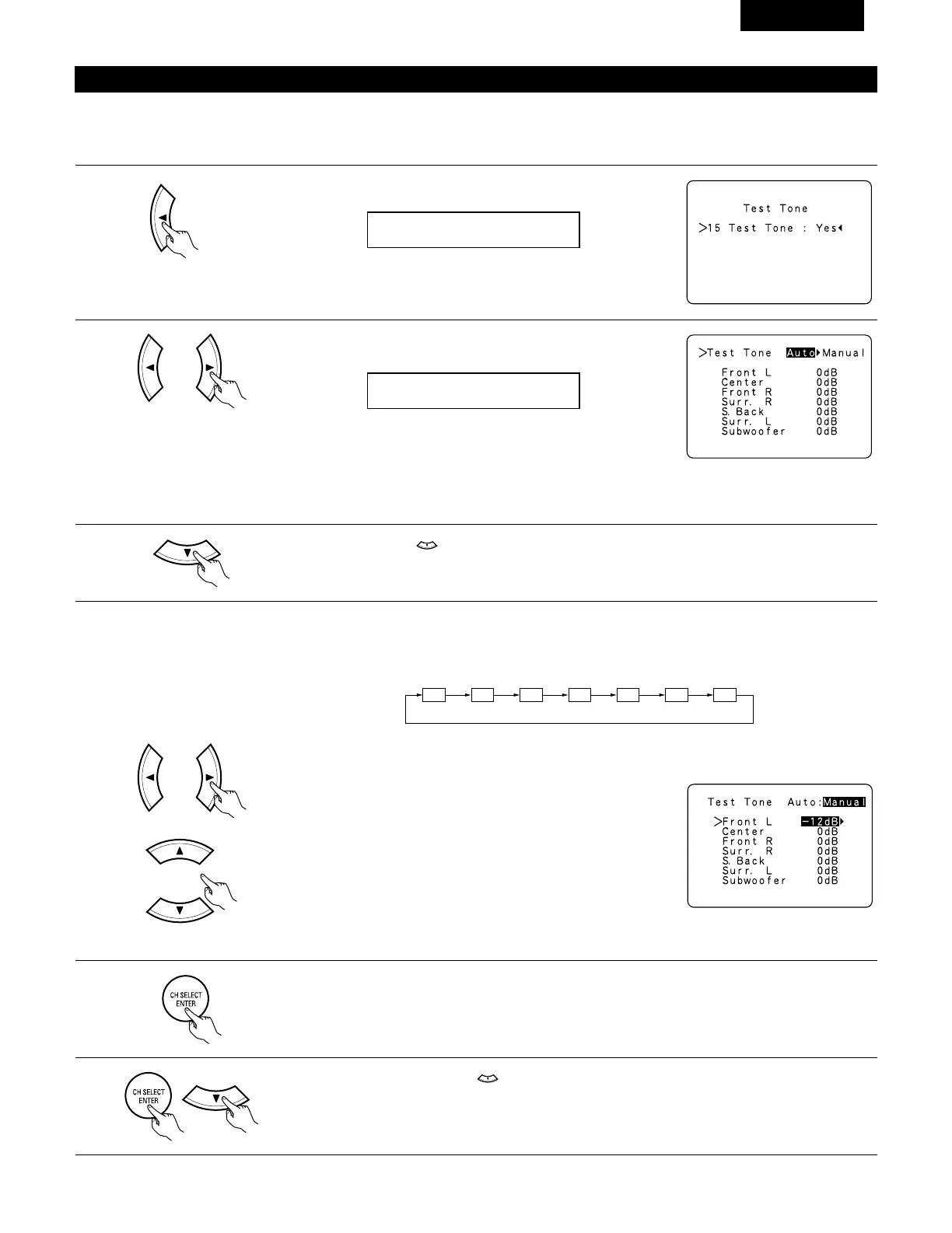 Les tonalités d’essai sont émises des différentes enceintes dans l’ordre suivant, à des intervalles de 4