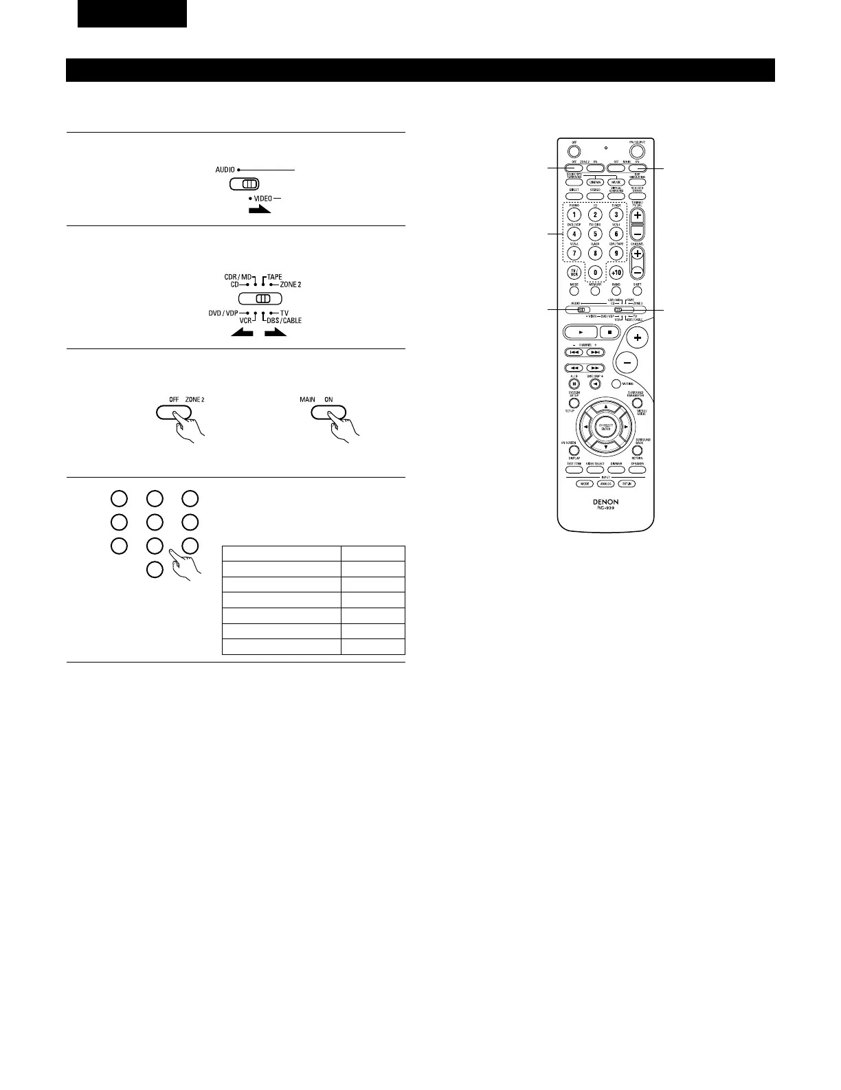 Appuyez sur la touche OFF (ZONE2) et sur la touche ON