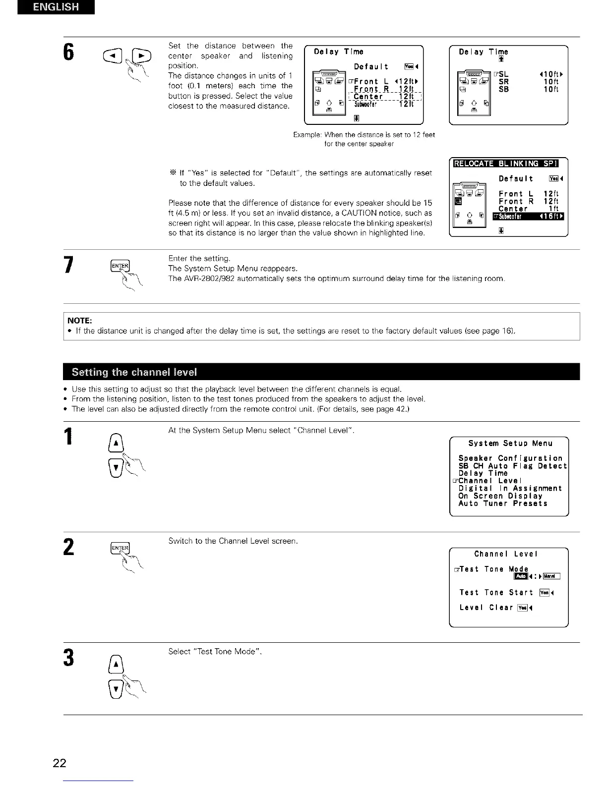 The AVR-2802/982 automatically sets the optimum surround delay time for the listening room.