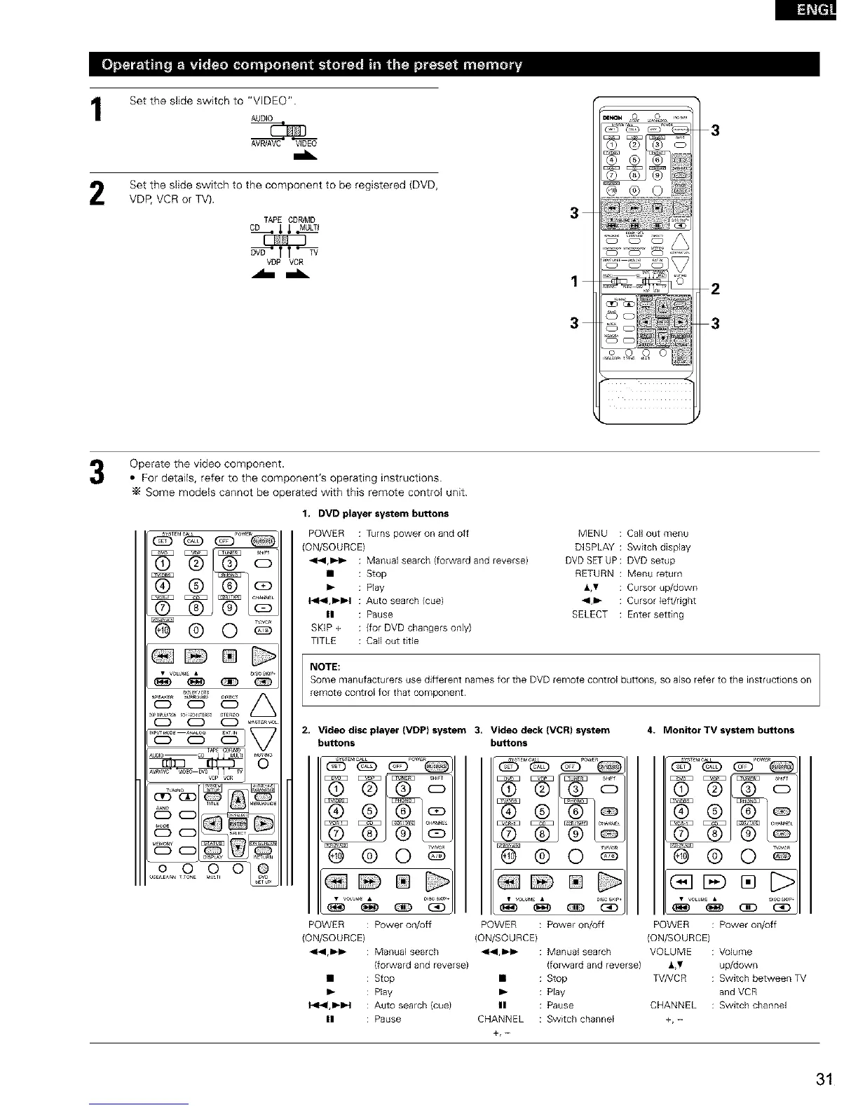 2, Video disc player {VDP) system 3 Video _eck {VCR) system 4. Monito_ TV system buttons