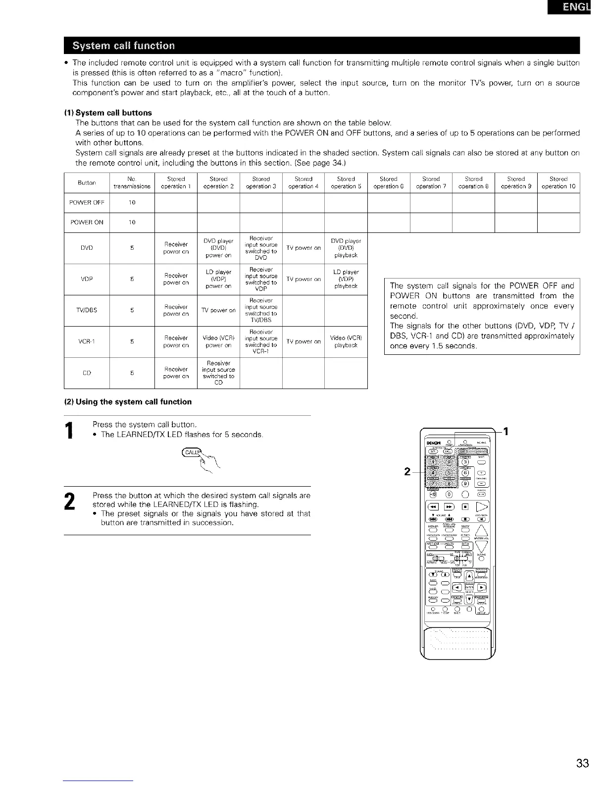 • The included remote control unit is equipped with a system call function for transmitting multiple remote control signals when a single button