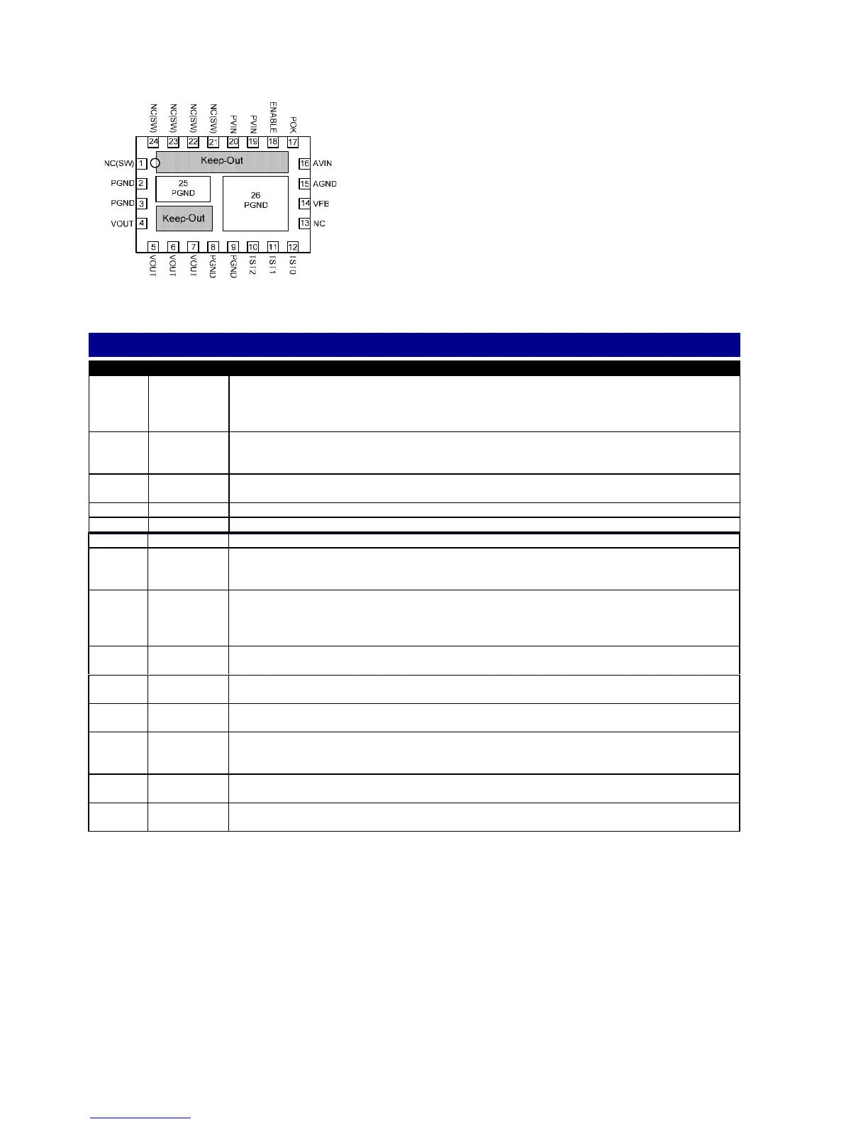 NO CONNECT: These pins are internally connected to the common switching node of the
