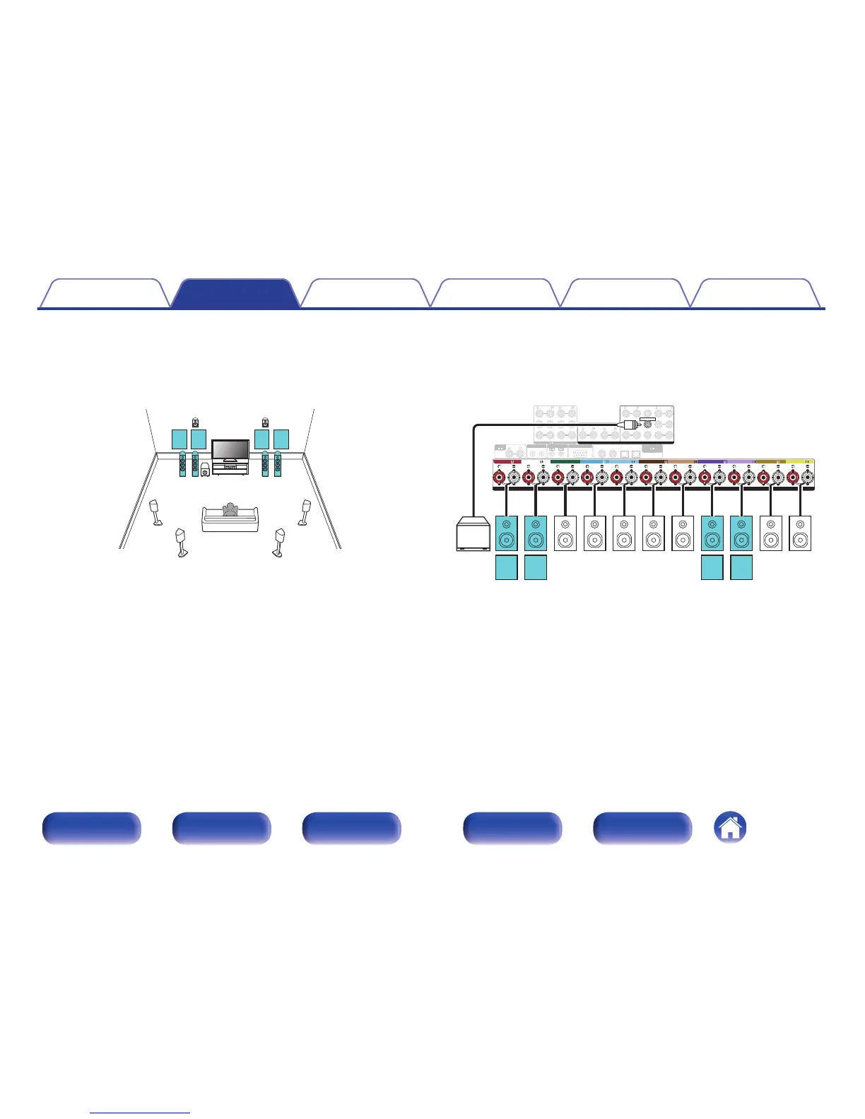 You can connect speakers for up to 9-channels for MAIN ZONE. When you connect speakers for 8 or more channels, the output speakers