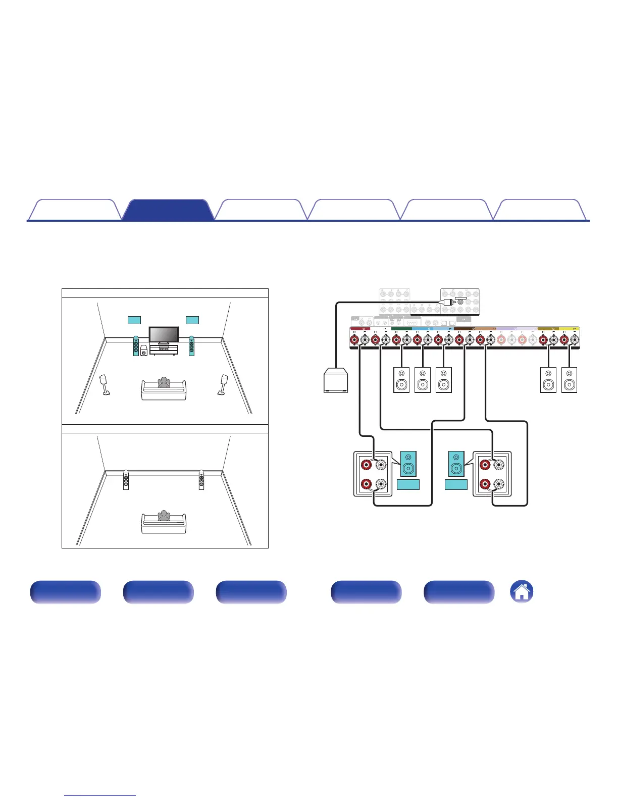 5.1-channel playback (bi-amp connection of front speakers: MAIN ZONE) + 2-channel playback