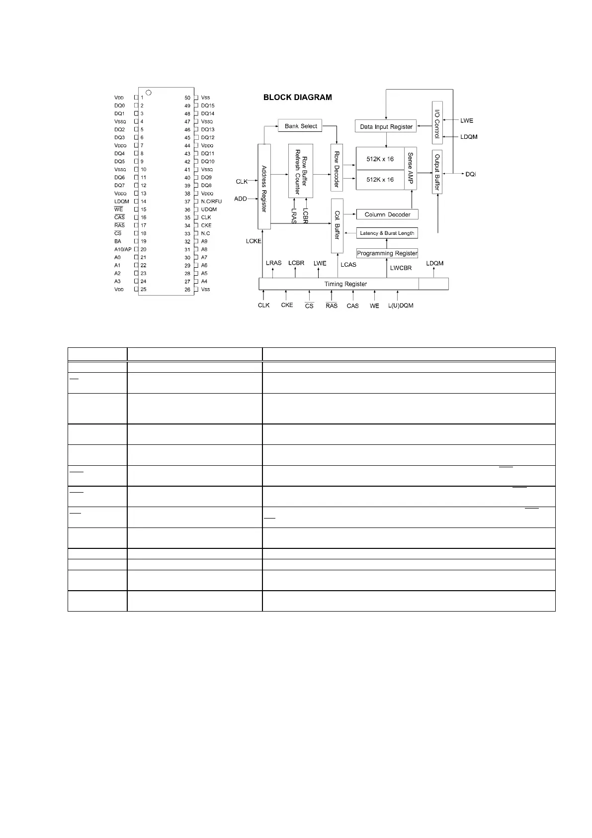 DQ0~15 Data Input / Output Data inputs/outputs are multiplexed on the same pins.