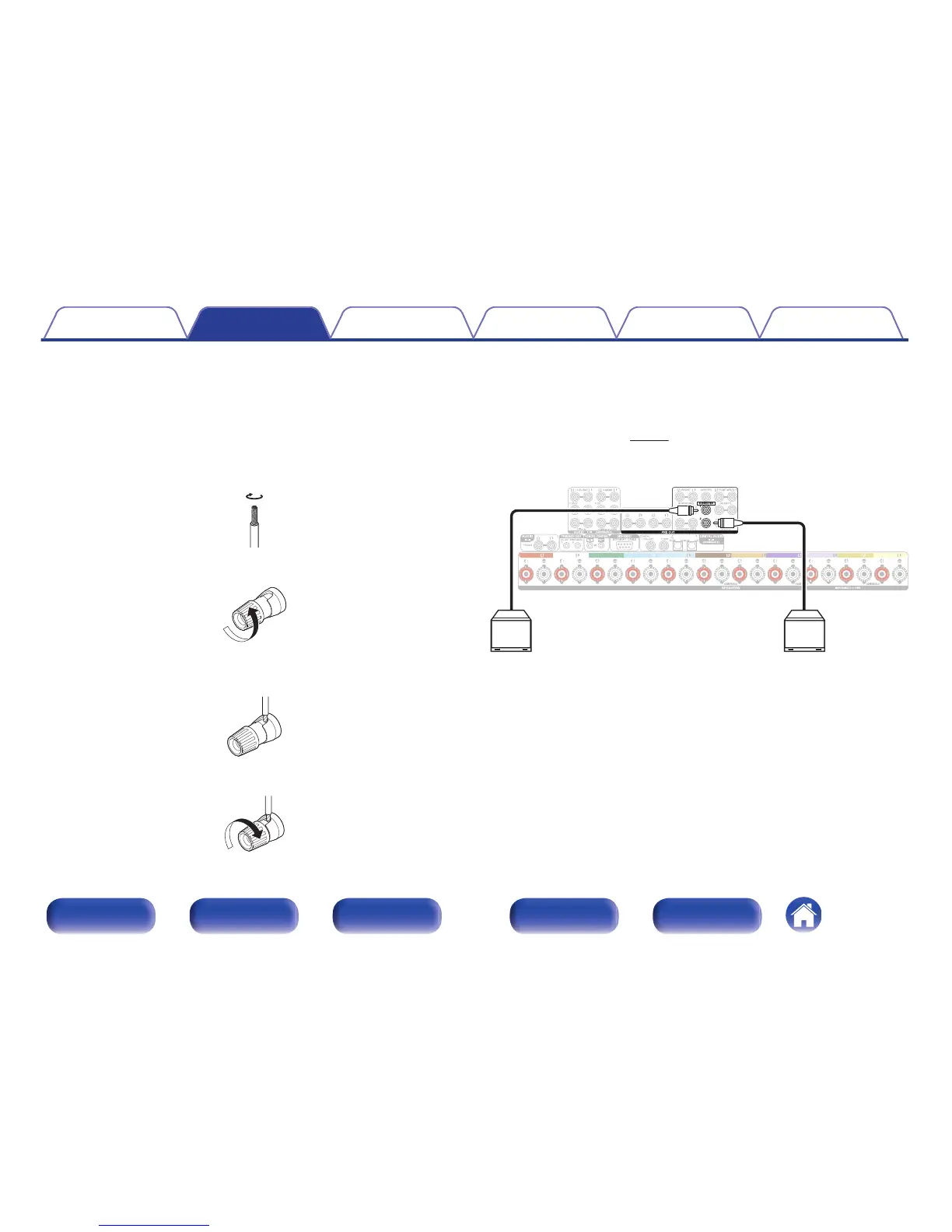 Use a subwoofer cable to connect the subwoofer. Two subwoofers can
