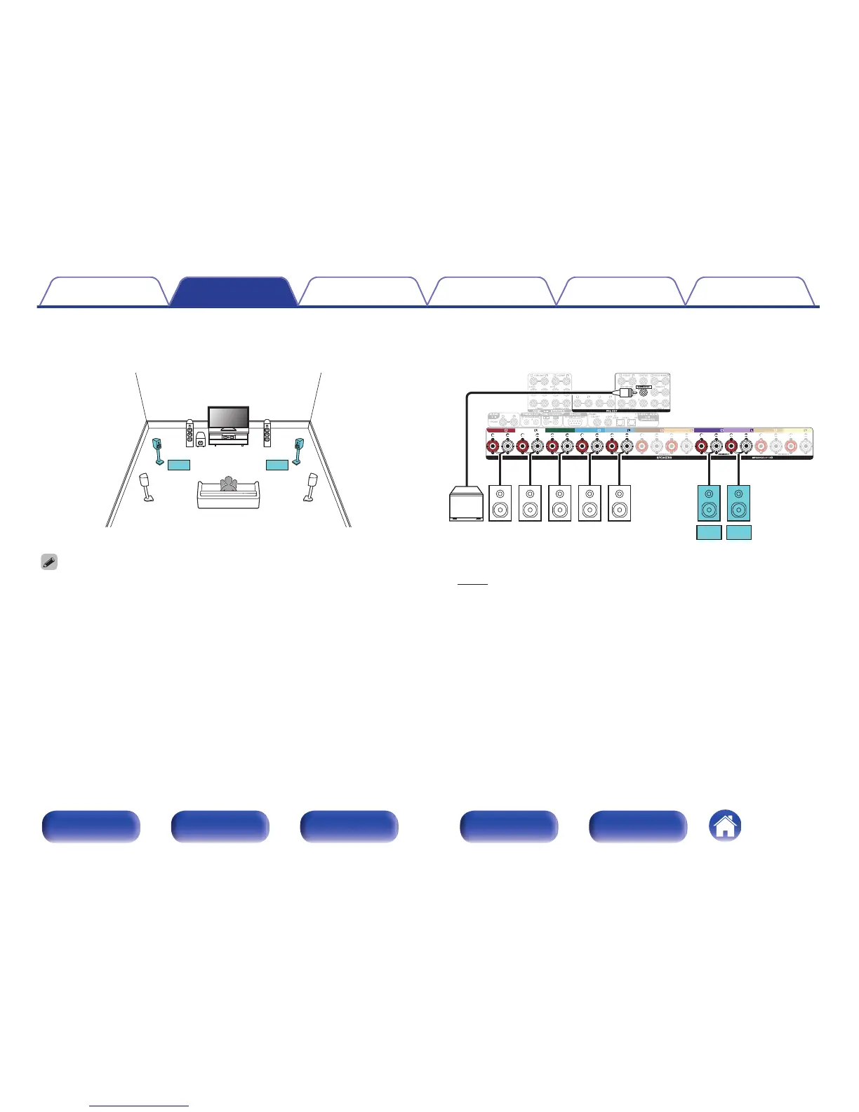 Set “Floor” - “Layout” to “5ch & FW” in the menu when connecting in this configuration. (v p. 246)