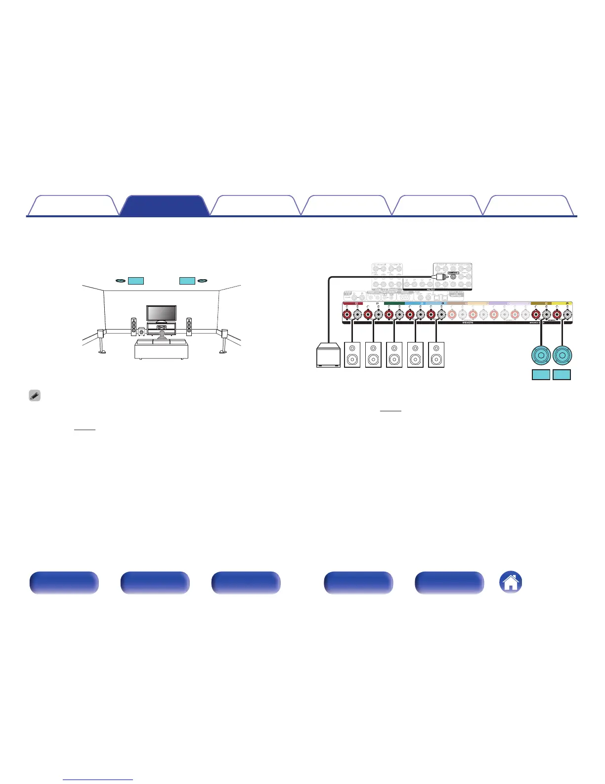Set “Floor” - “Layout” to “5ch” and “Height Sp” to “2ch” in the menu when connecting in this configuration. (v p. 246)