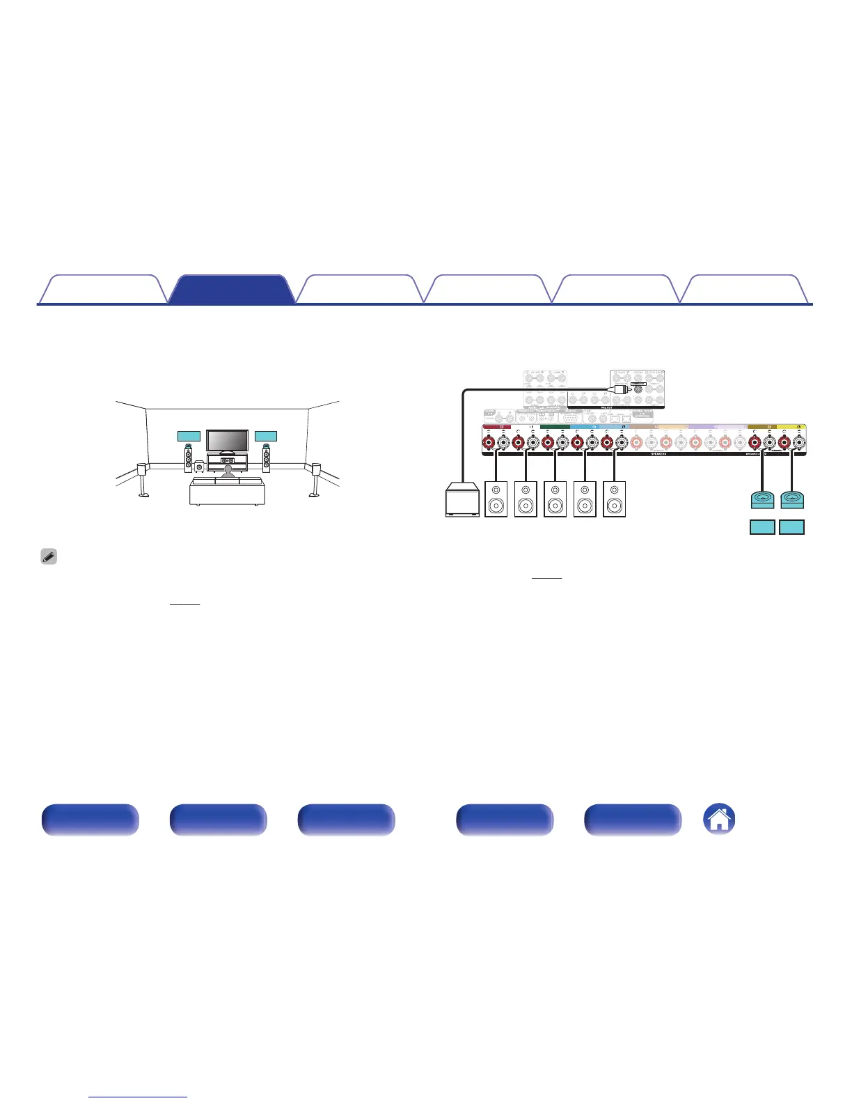 Set “Floor” - “Layout” to “5ch” and “Dolby Sp” to “2ch” in the menu when connecting in this configuration. (v p. 246)