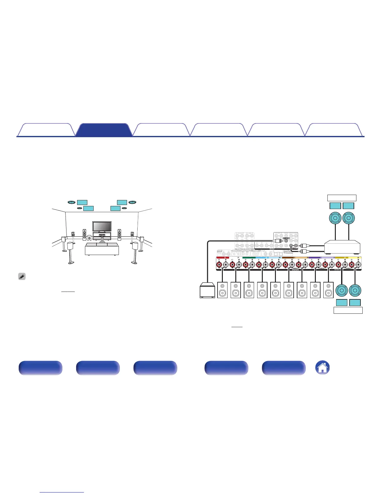 You can connect speakers for up to 13-channels for MAIN ZONE by using an external power amplifier. When you connect speakers for 12 or more