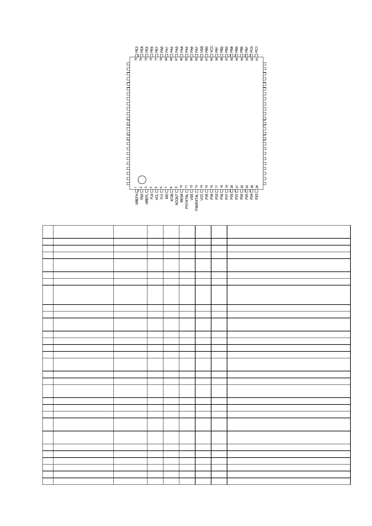 table “List of Pins and Pin Functions (100-Pin LQFP)”.