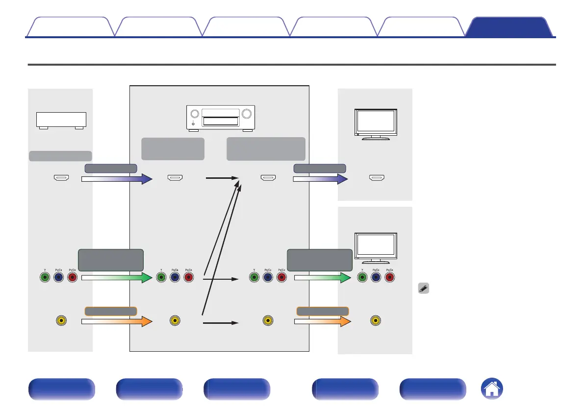 This unit automatically converts the input video signals as shown in the diagram before outputting them to the TV.