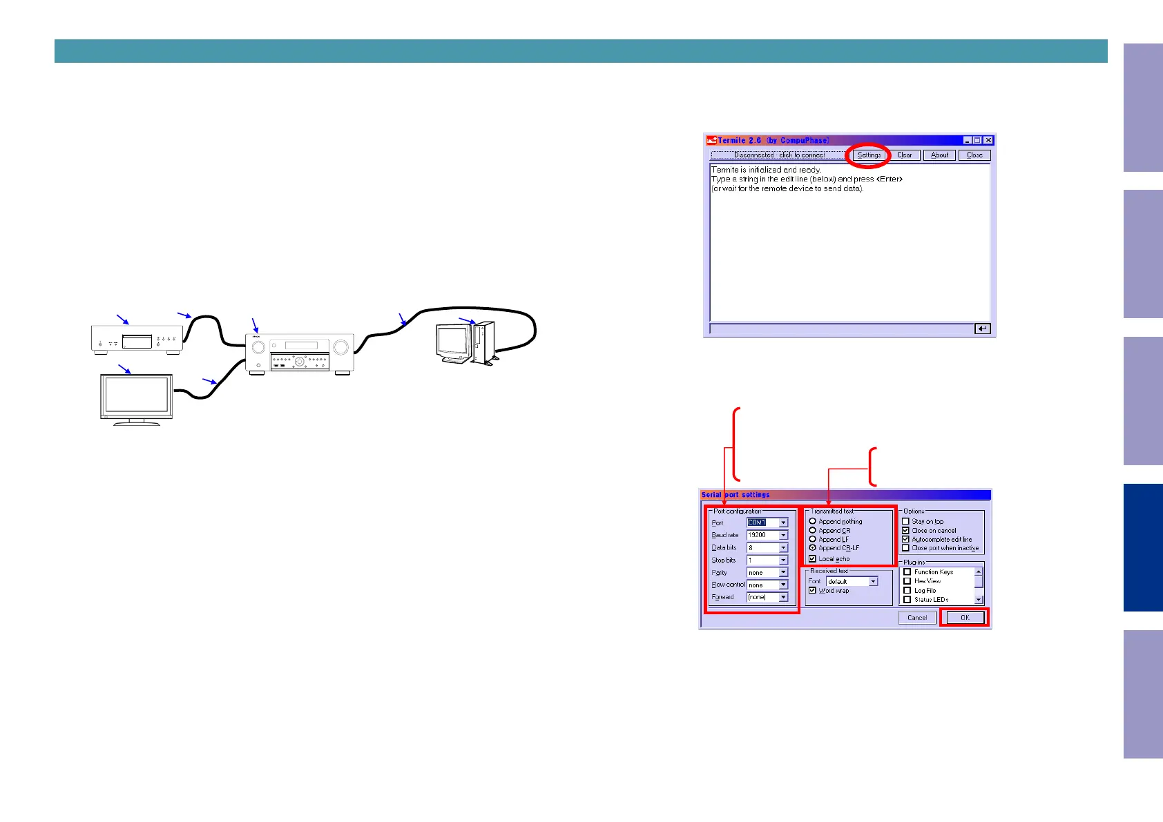 PC settings : Execute the serial communication program, Termite.exe.