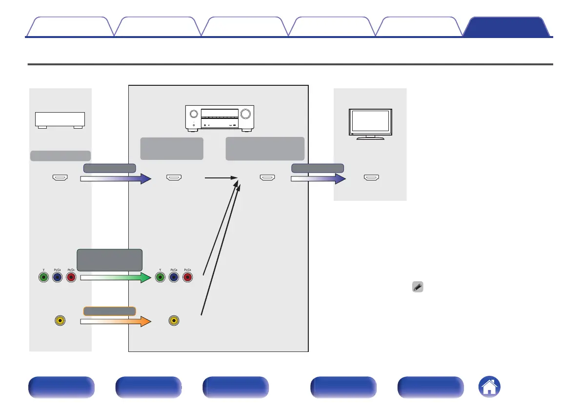 This unit automatically converts the input video signals as shown in the diagram before outputting them to the TV.